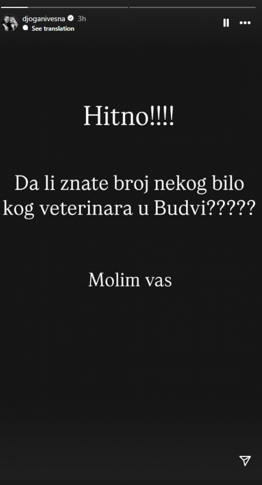 - Hitno. Da li znate broj bilo kog veterinara u Budvi? Molim vas - napisala je Đoganijeva.