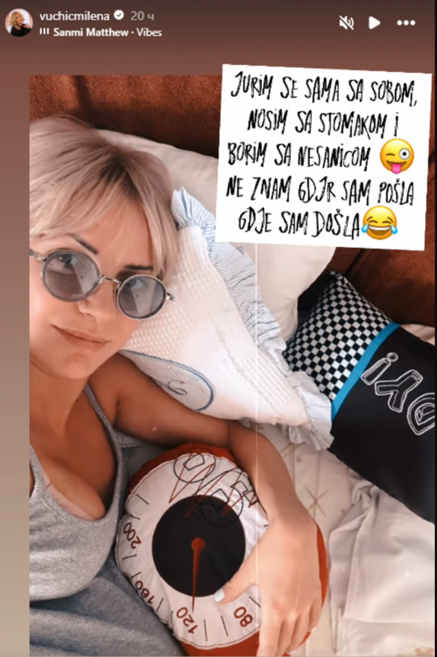 - Jurim se sama sa sobom, nosim sa stomakom i borim sa nesanicom. Ne znam gde sam pošla, gde sam došla - napisala je Milena.