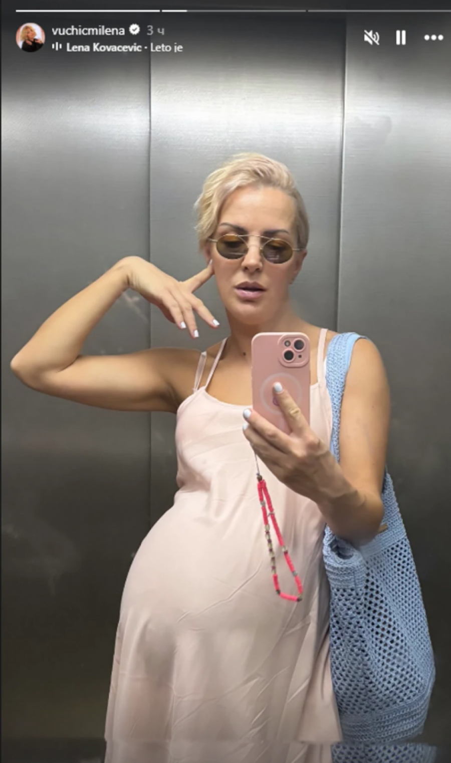 Milena se zatim uslikala u liftu u roze haljini, a sudeći po njenim objavama, ona je veoma aktivna trudnica.