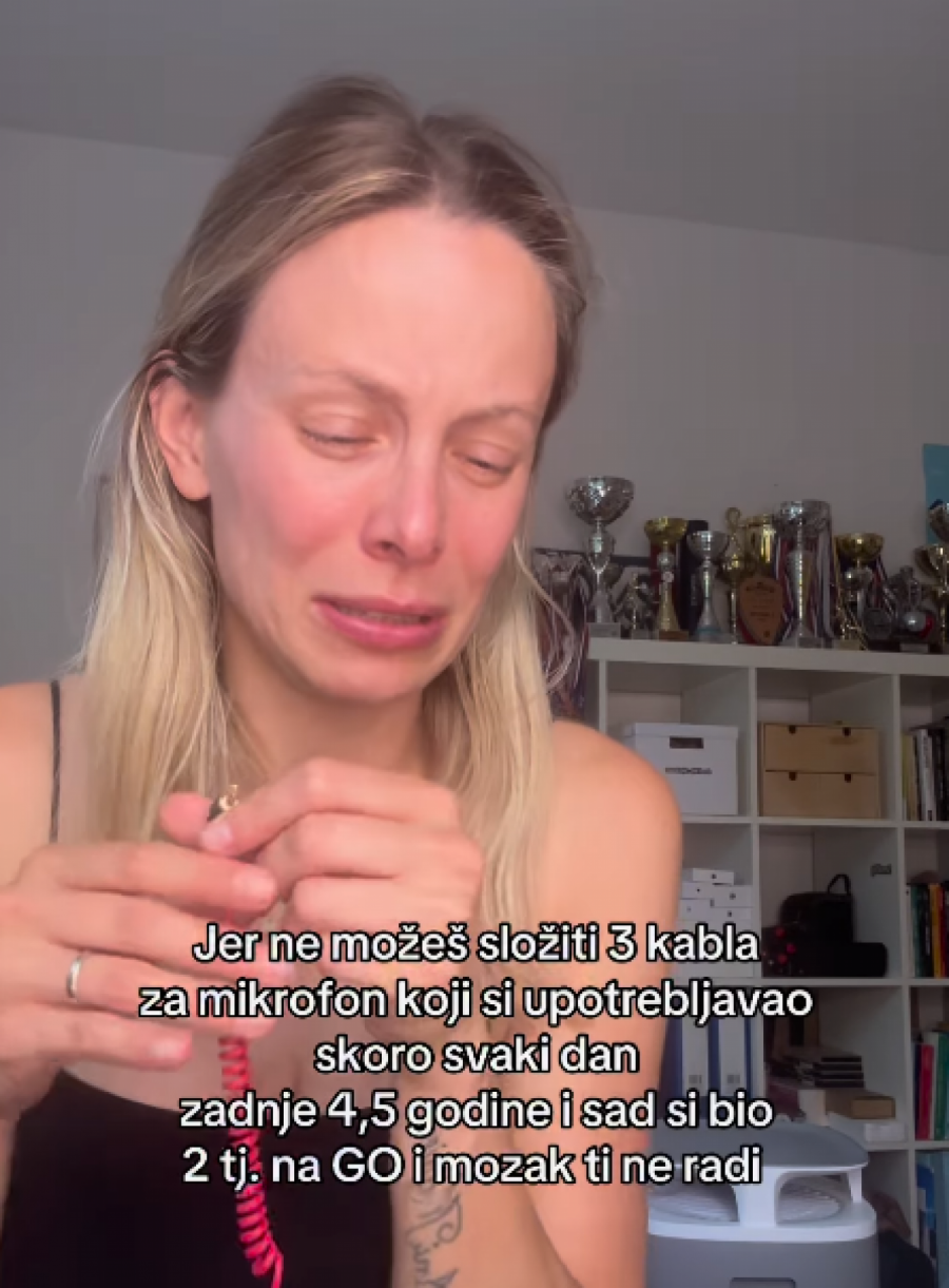 Hrvatska glumica i influenserka Tena Sakar Vukić objavila je na Instagramu video u kojem se rasplakala, priznajući da se nakon povratka s godišnjeg odmora nije mogla setiti kako da spoji kablove za mikrofon koje godinama koristi svakodnevno.