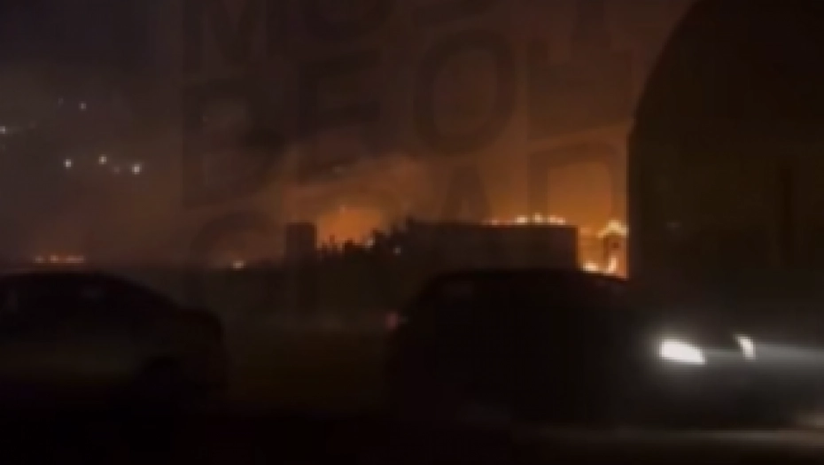 Kako se vidi na snimku, dok na zemlji nešto gori, iznad požara ispaljen je vatromet koji je, najverovatnije i izazvao požar.