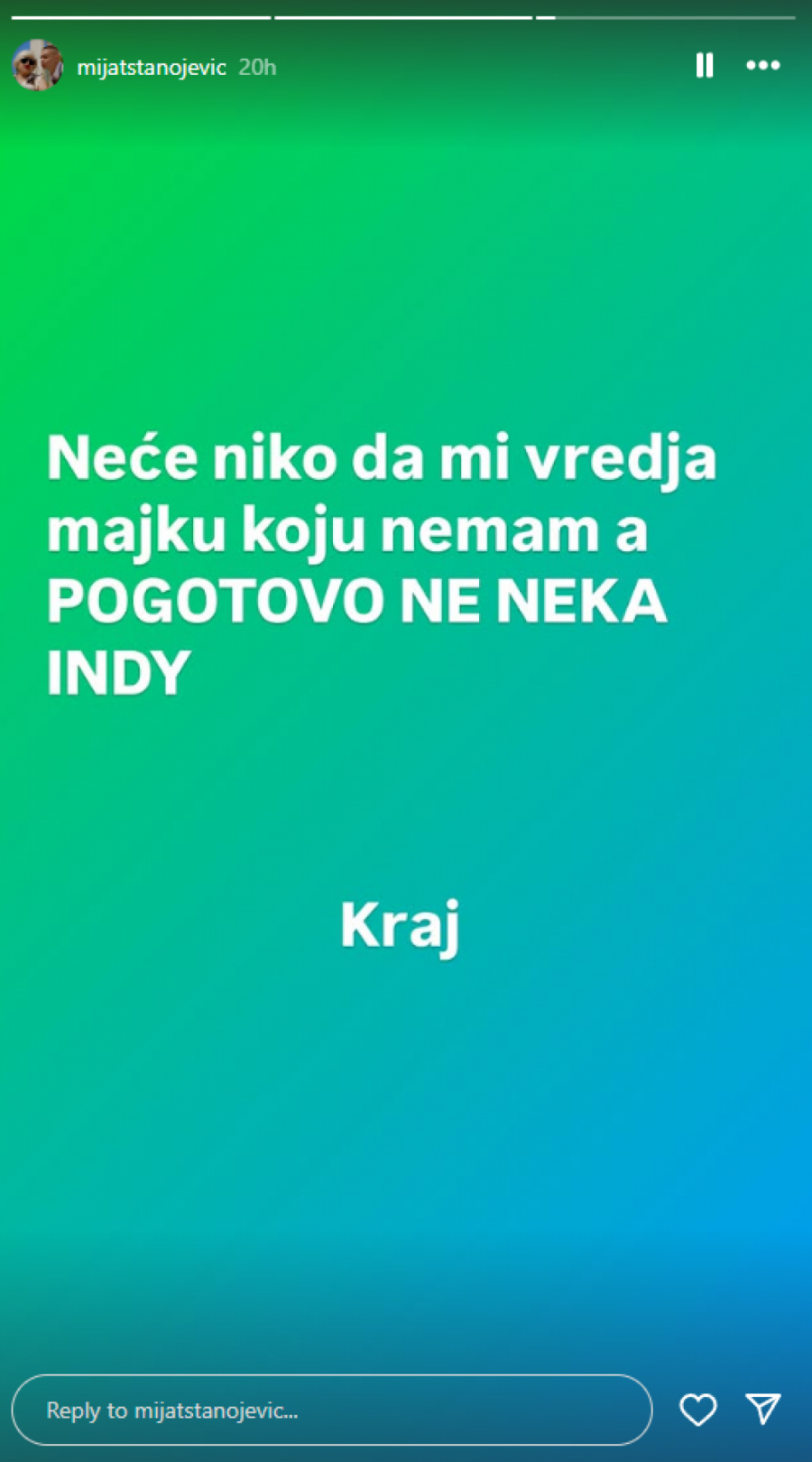 Indira Aradinović, poznatija kao Indi, žestoko je na svom Instagram storiju osudila mladog tiktokera Mijata Stanojevića.