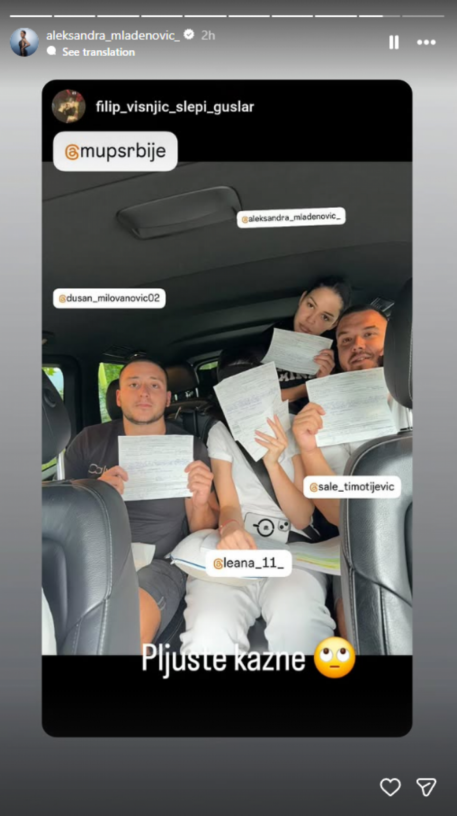 - Pljušte kazne - napisala je Mladenovieva uz fotografiju koju je objavila.