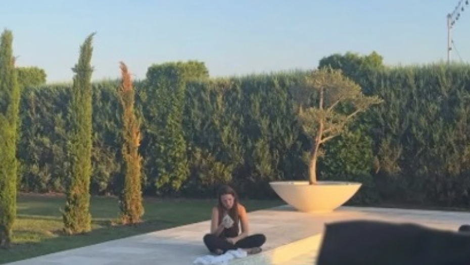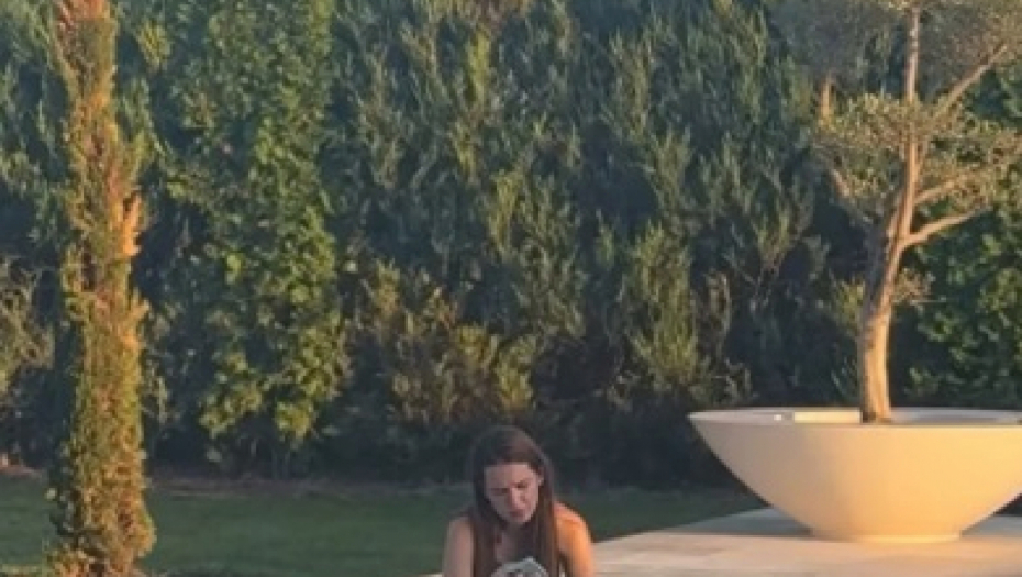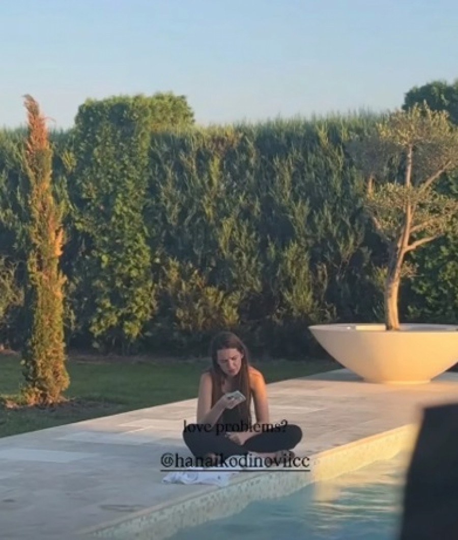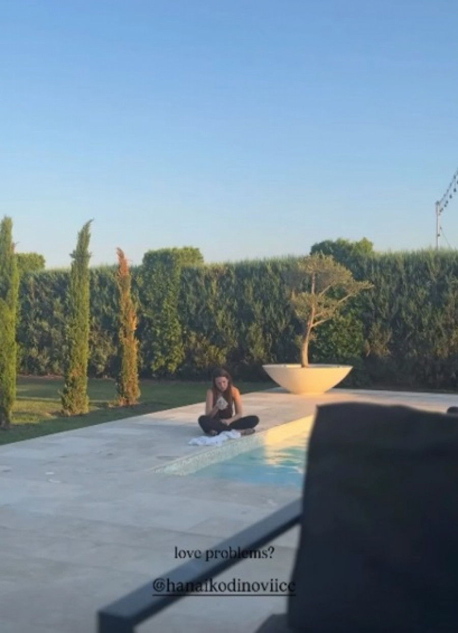 Hana je sada na svom Instagram profilu pokazala kako ju je tetka Kristina Bekvalac uslikala dok sedi pored bazena i drži telefon u ruci.