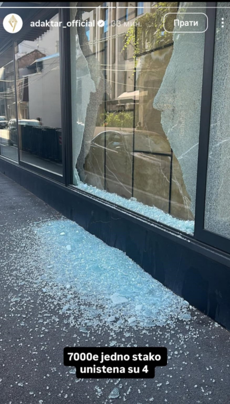 Adam Adaktar pretrpeo je veliku štetu, kada je tokom noći njegov luksuzni lokal na Vračaru potpuno uništen, tačnije, razbijena su sva četiri stakla na objektu u kome je ulepšavao žene.