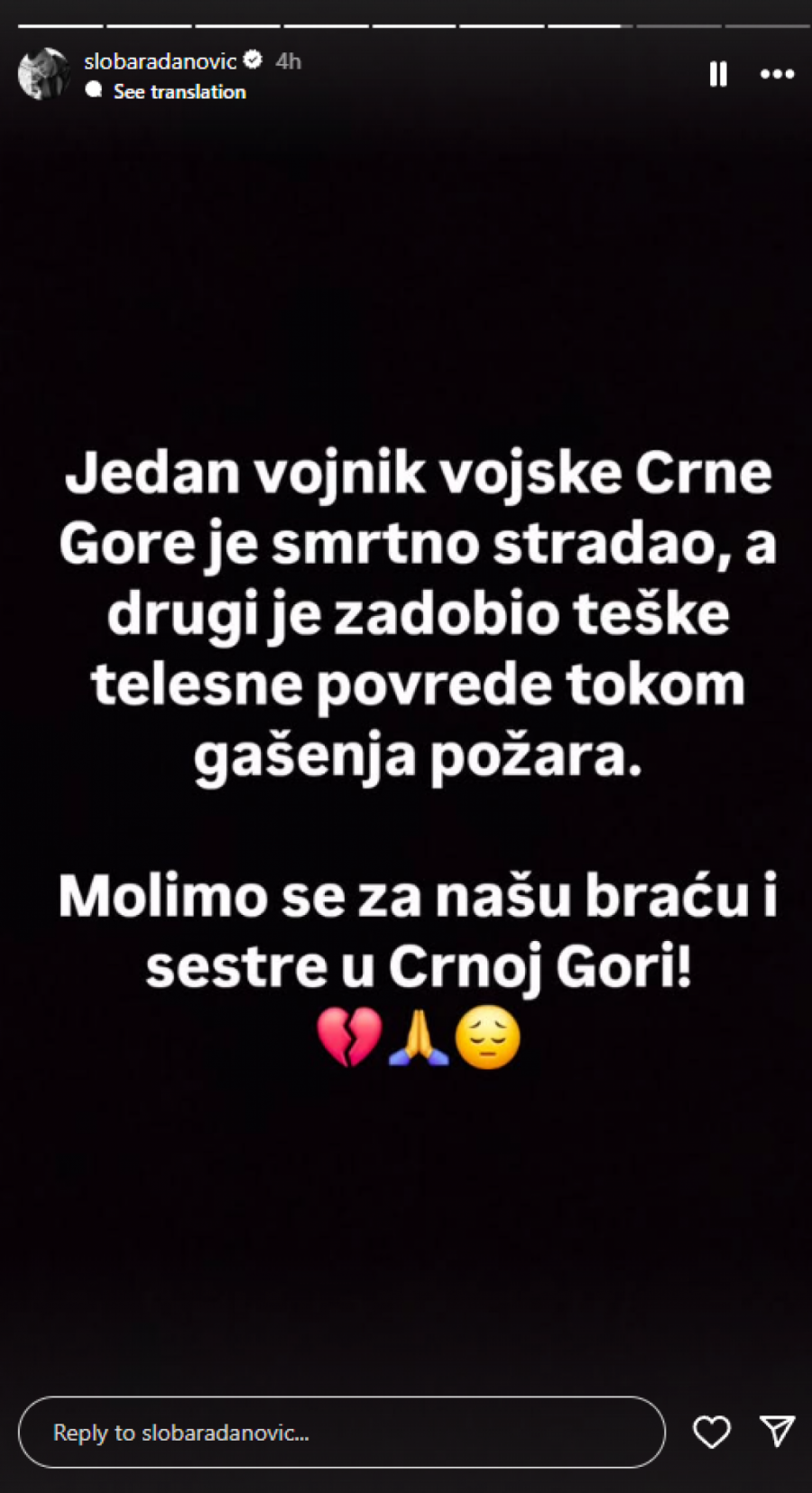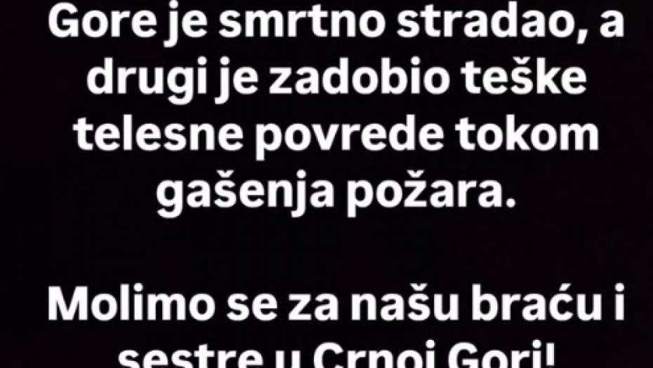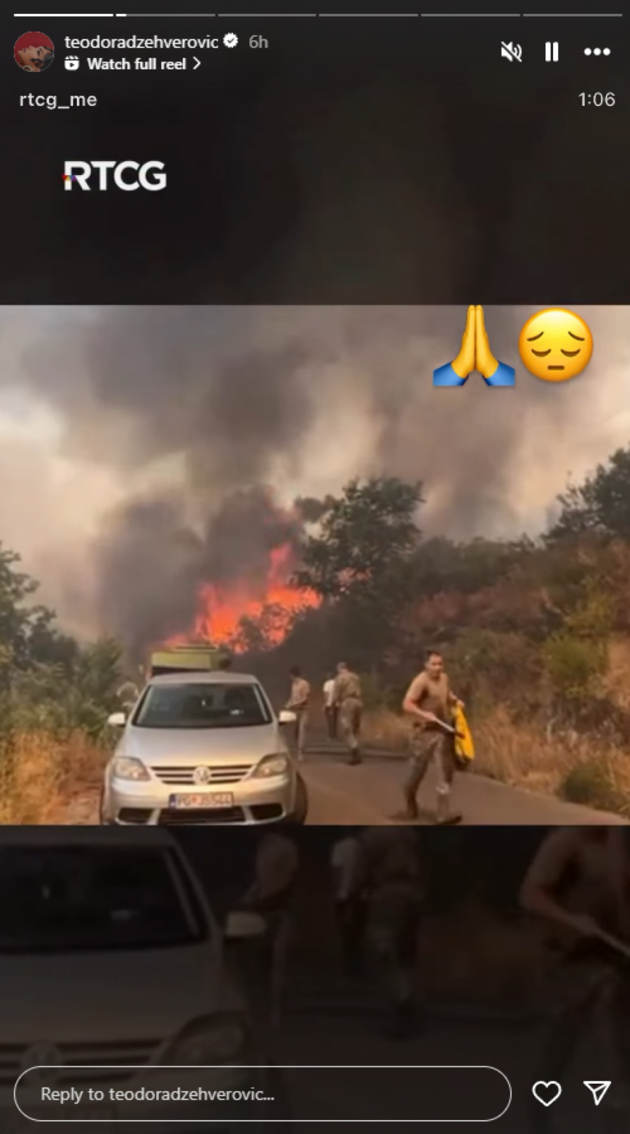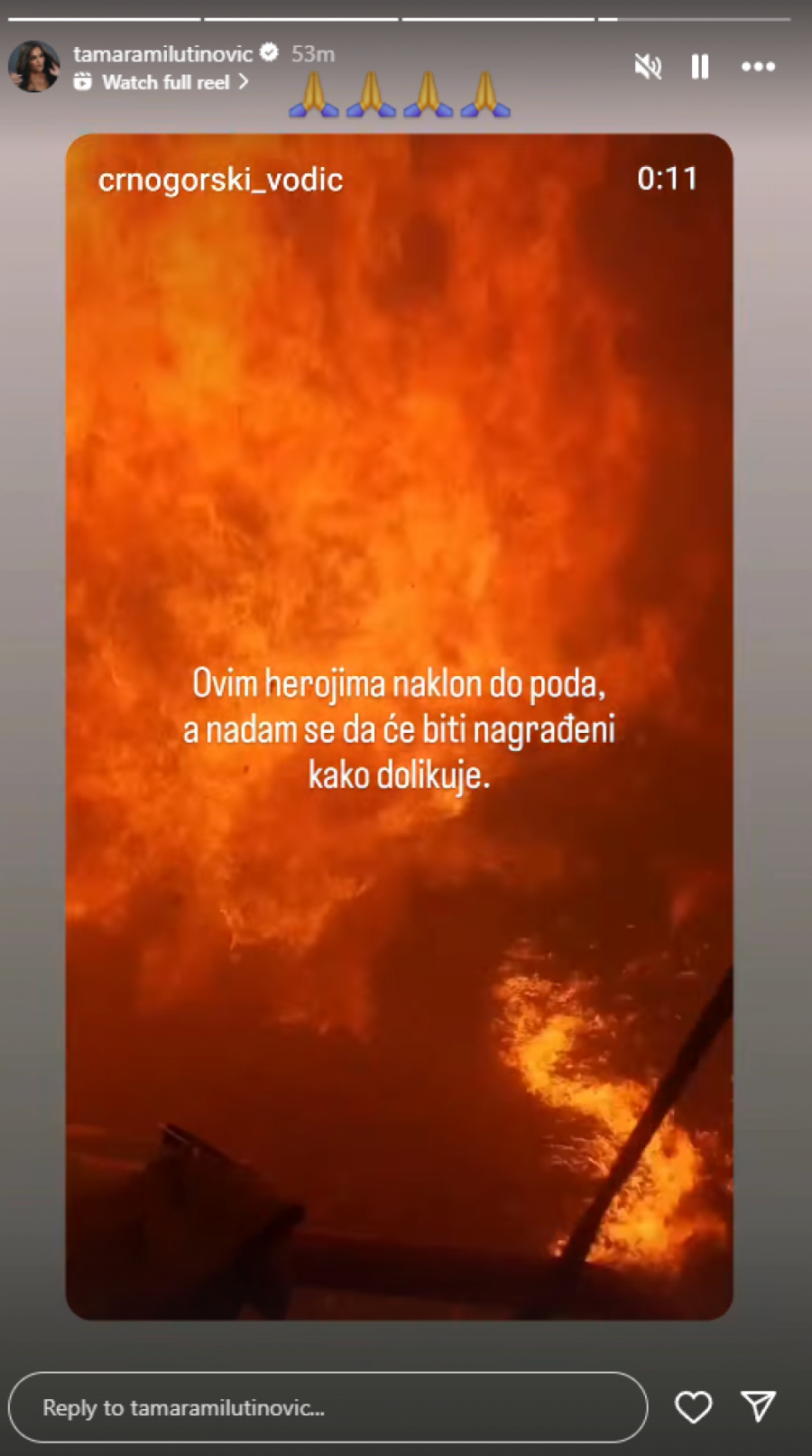 - Podrška za sve ljude u Crnoj Gori koji su ugroženi u stravičnim požarima - napisala je pevačica.