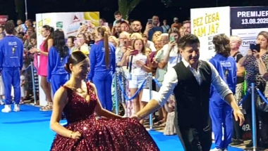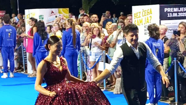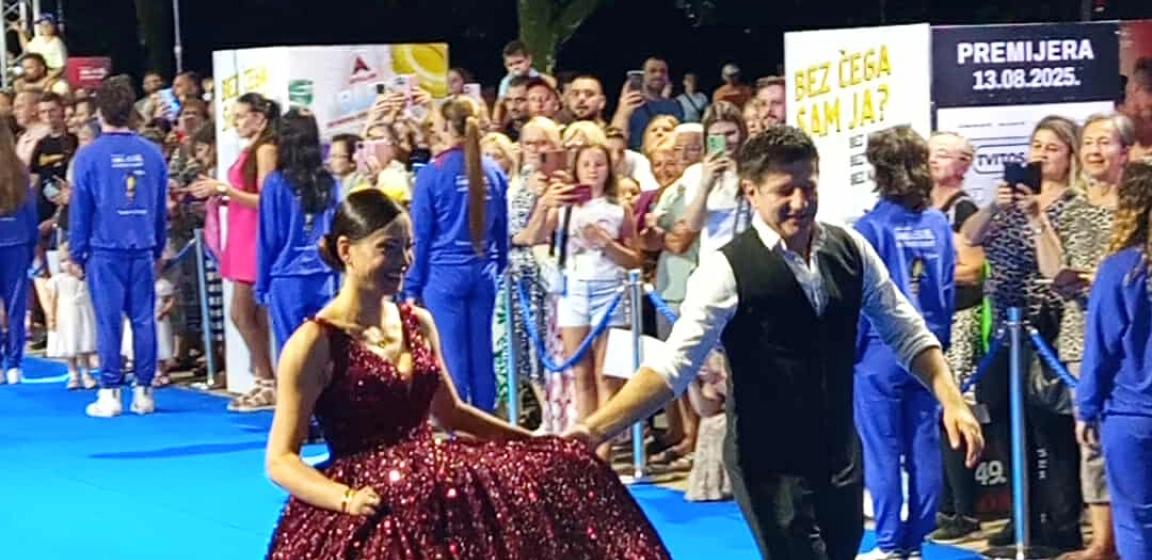 U elegantnoj crvenoj balskoj haljini, ukrašenoj sjajnim šljokicama, otvorila je manifestaciju sa kolegom Miljanom Prljetom.