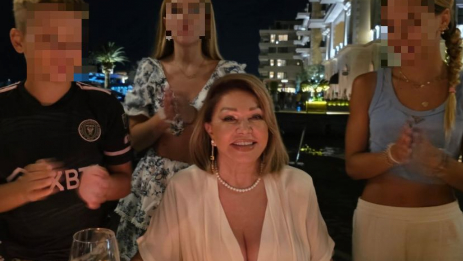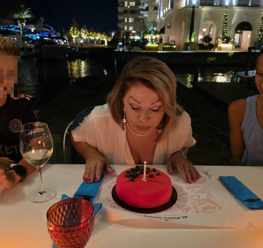 U prisustvu unuka je oduvala svećice, dok je na sebi imala belu dekoltiranu haljinu.