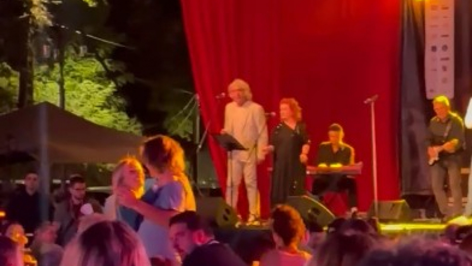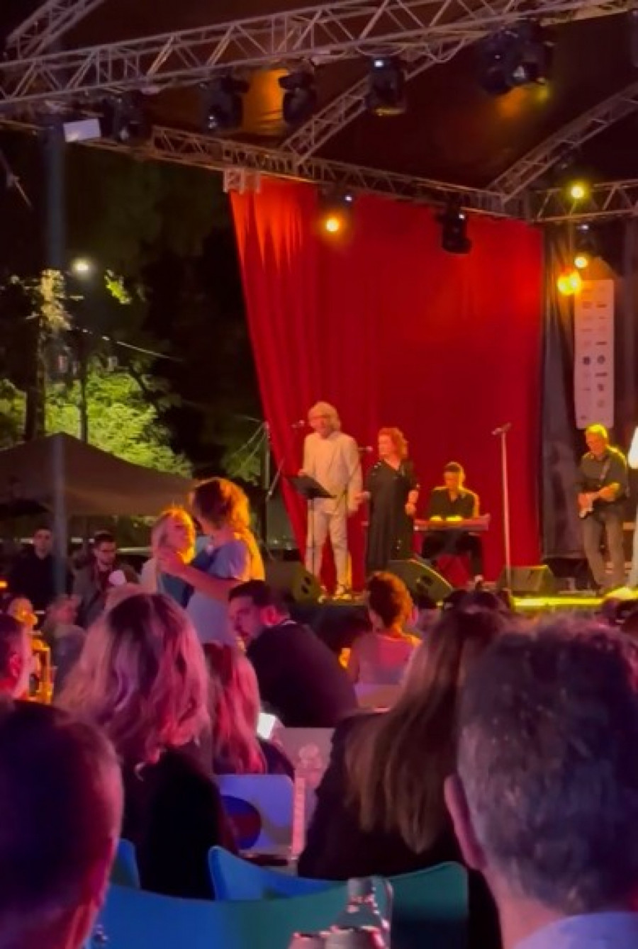 Nakon svečanog dela programa Željko se opustio i zaplesao sa glumicom Miljanom Popović koja se pojavila u filmu "Vezani" čiji je on producent.
