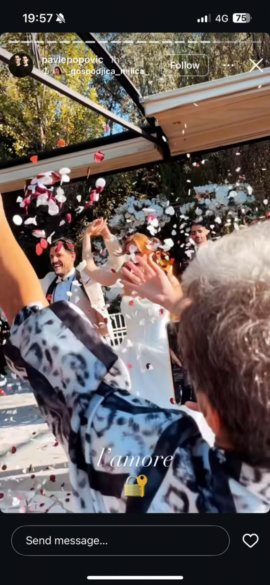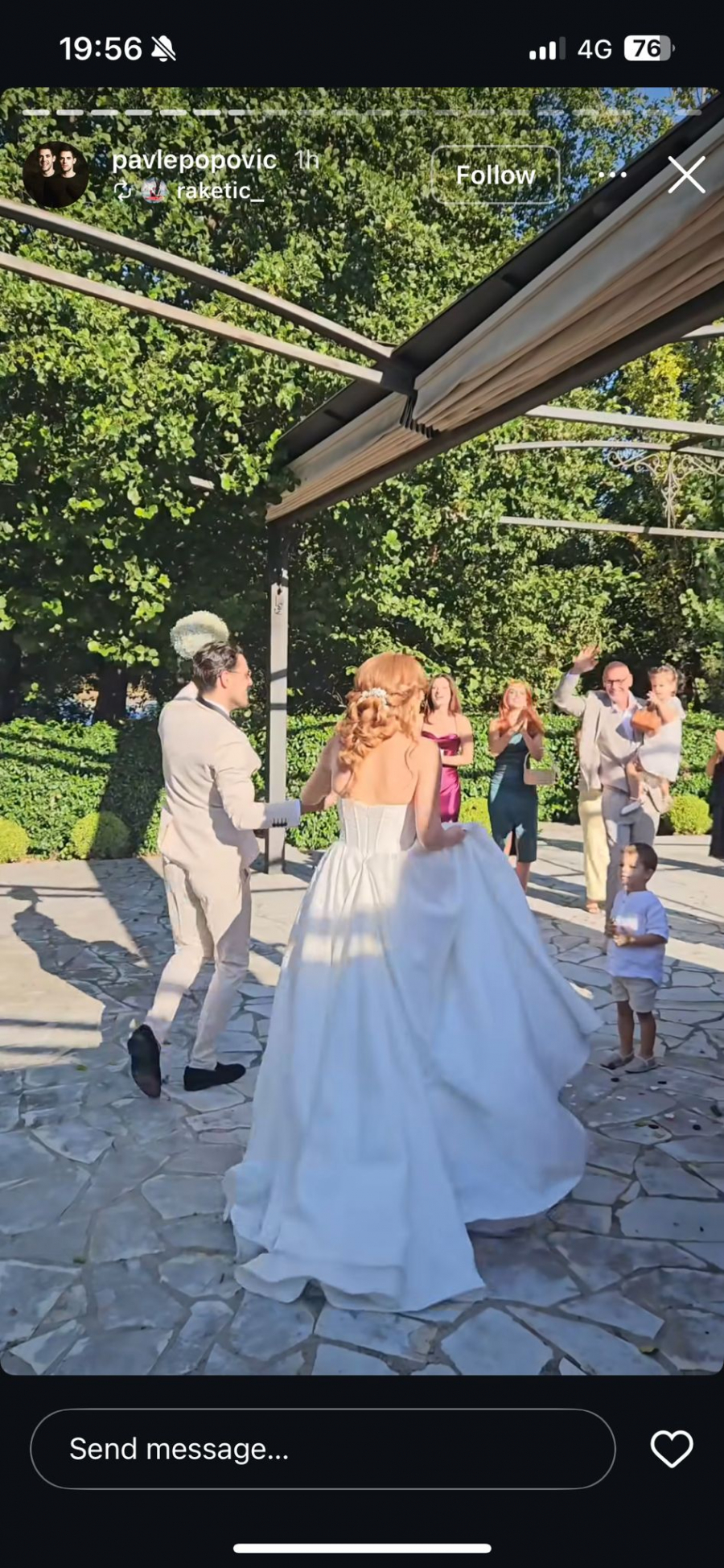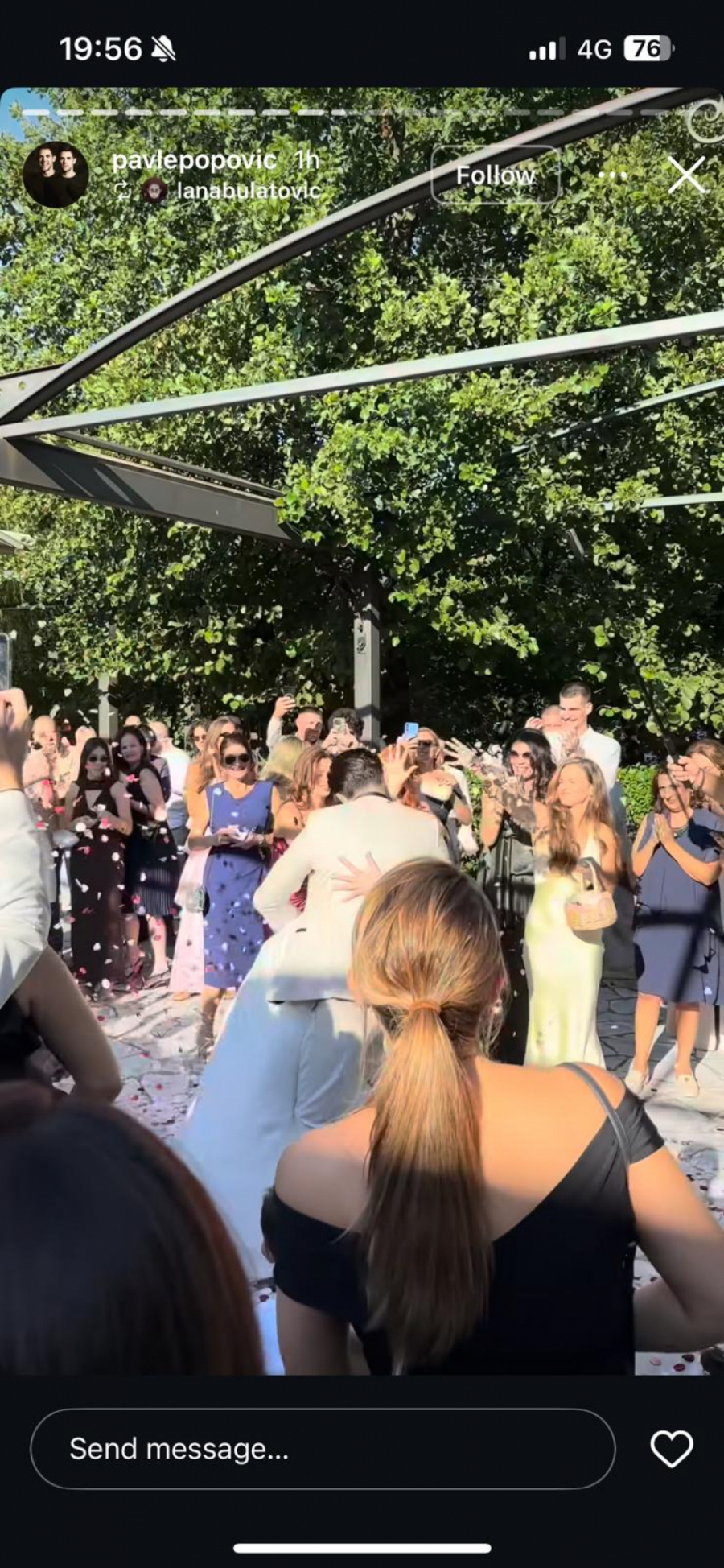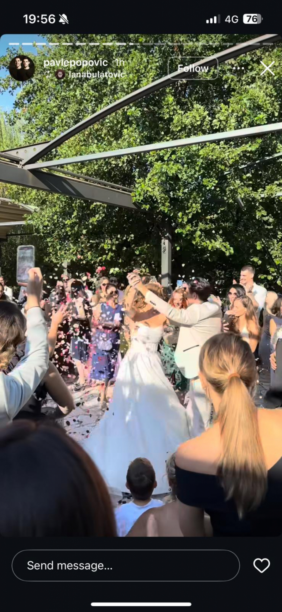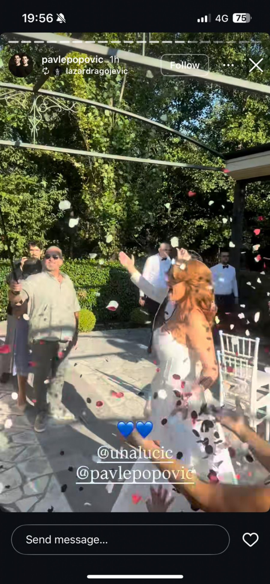 Mlada se pojavila u beloj venčanici i imala je opuštenu pletenicu ispod koje su se prepletali biseri, dok se Pavle odlučio za krem odelo, koje je po rubovima imalo crne detalje, a ceo stajling zaokružio je leptir mašnom.