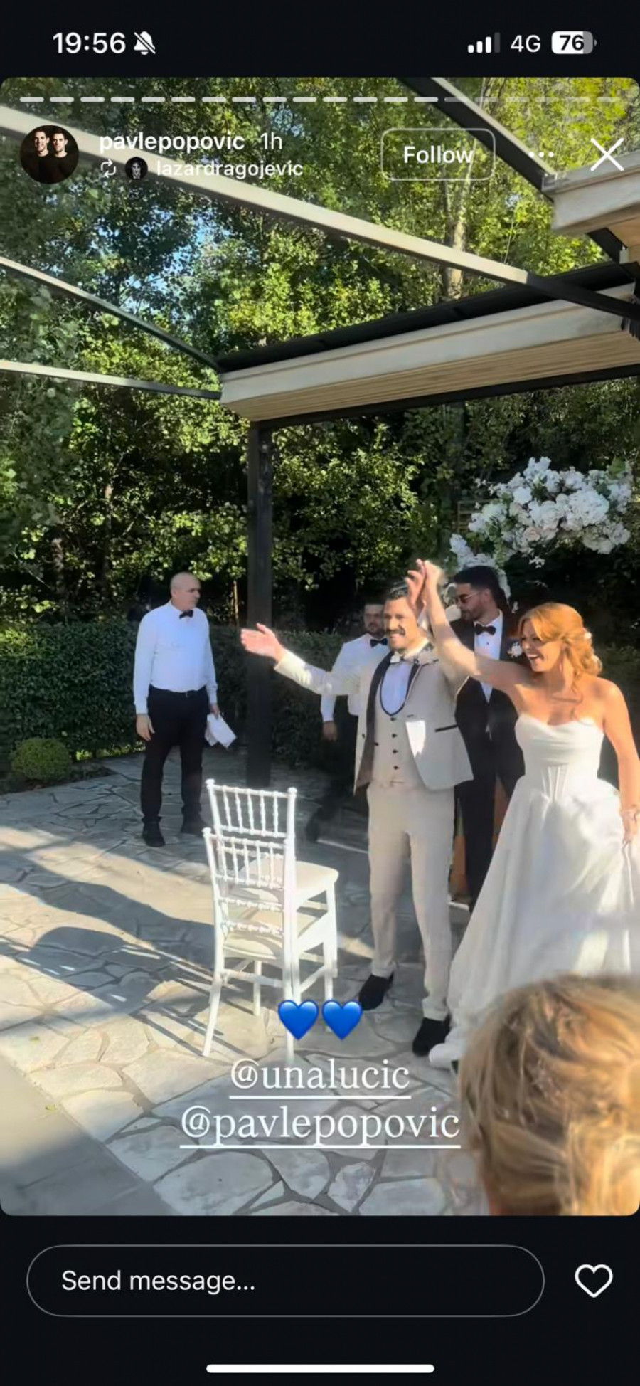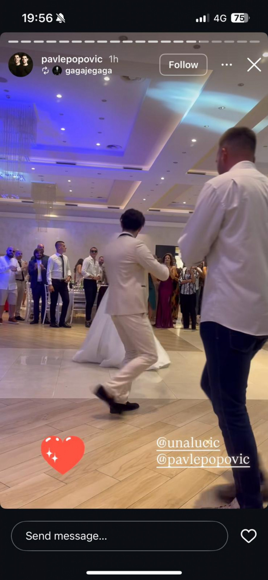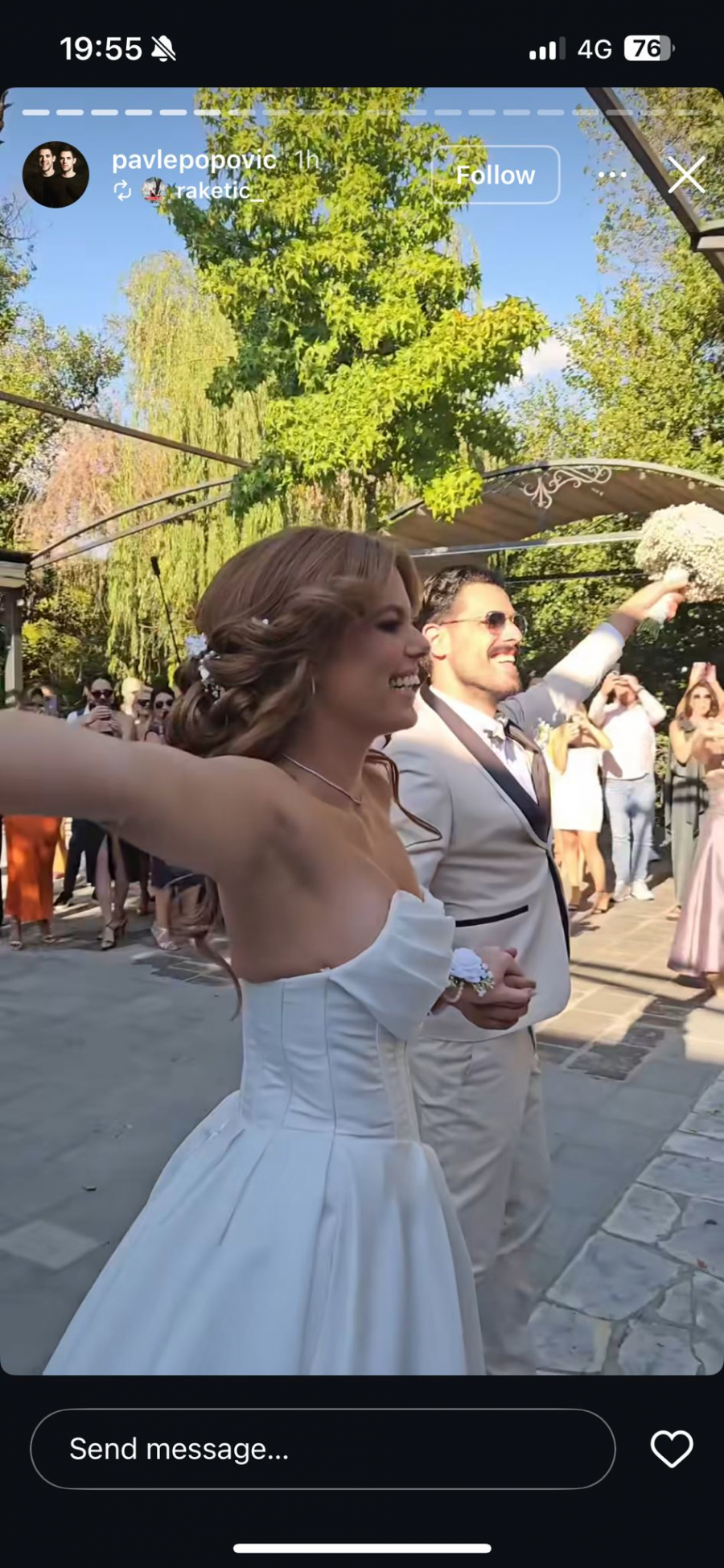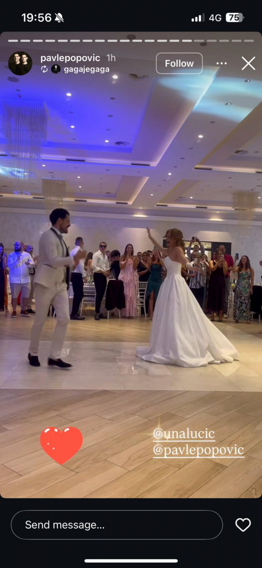 Mlada se pojavila u beloj venčanici i imala je opuštenu pletenicu ispod koje su se prepletali biseri, dok se Pavle odlučio za krem odelo, koje je po rubovima imalo crne detalje, a ceo stajling zaokružio je leptir mašnom.