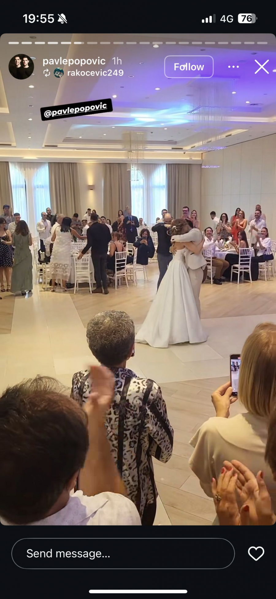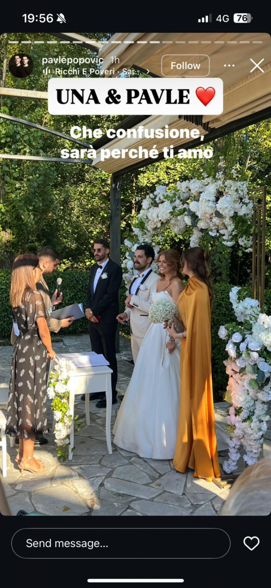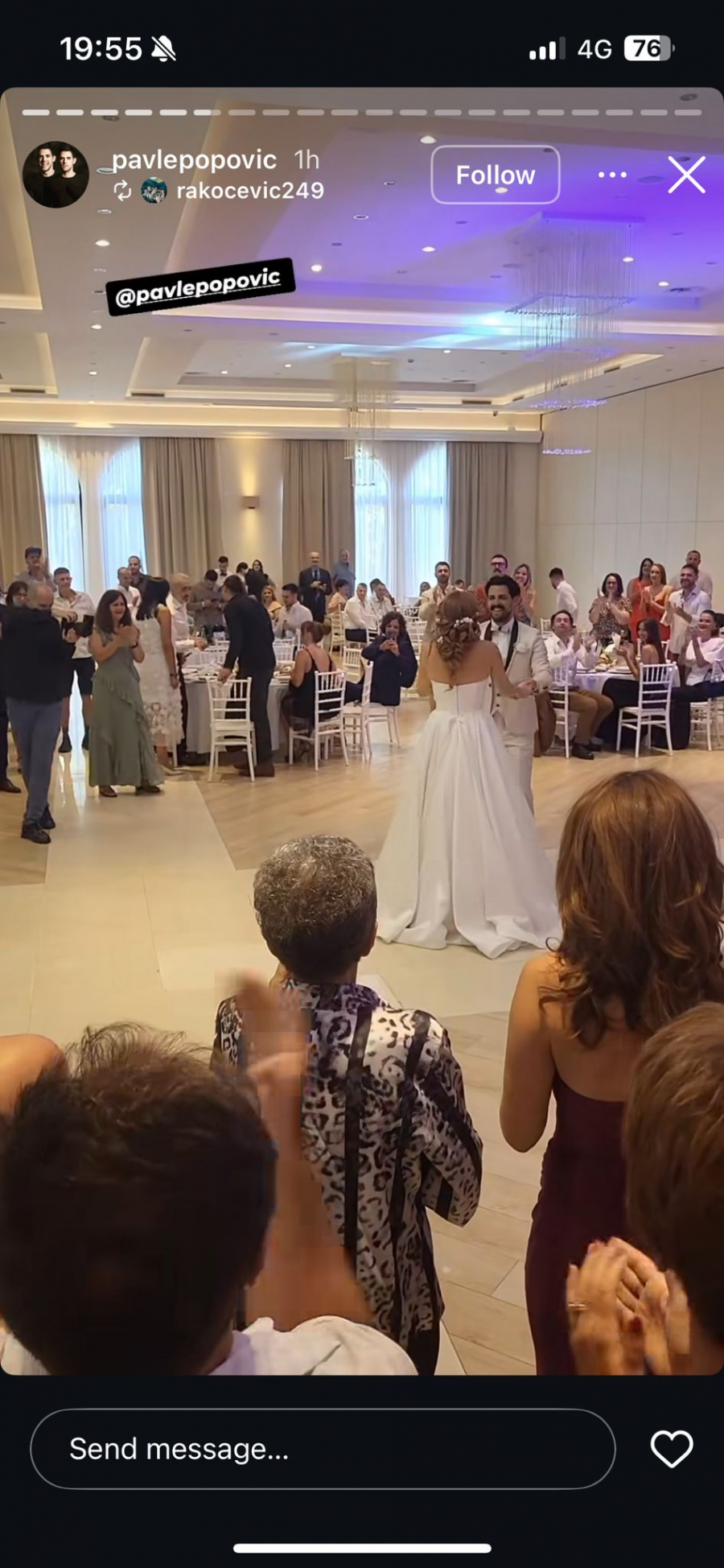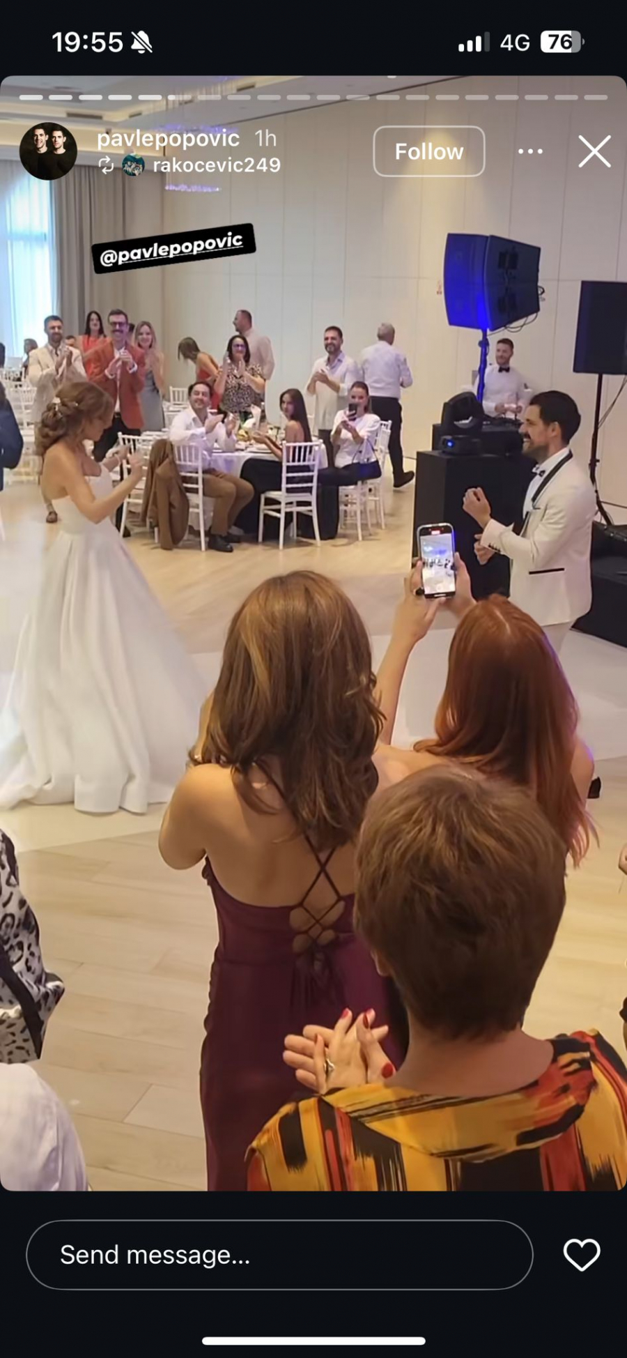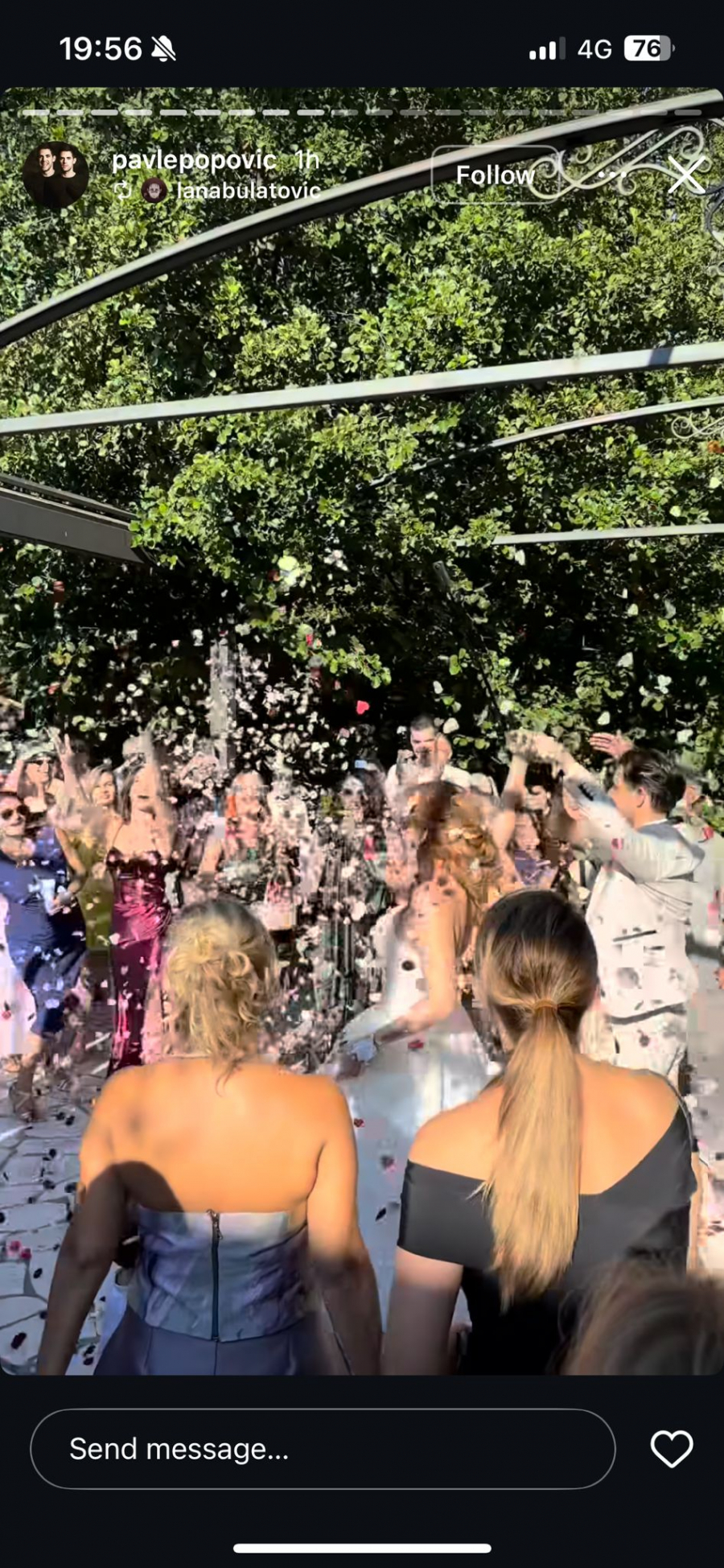 Mlada se pojavila u beloj venčanici i imala je opuštenu pletenicu ispod koje su se prepletali biseri, dok se Pavle odlučio za krem odelo, koje je po rubovima imalo crne detalje, a ceo stajling zaokružio je leptir mašnom.