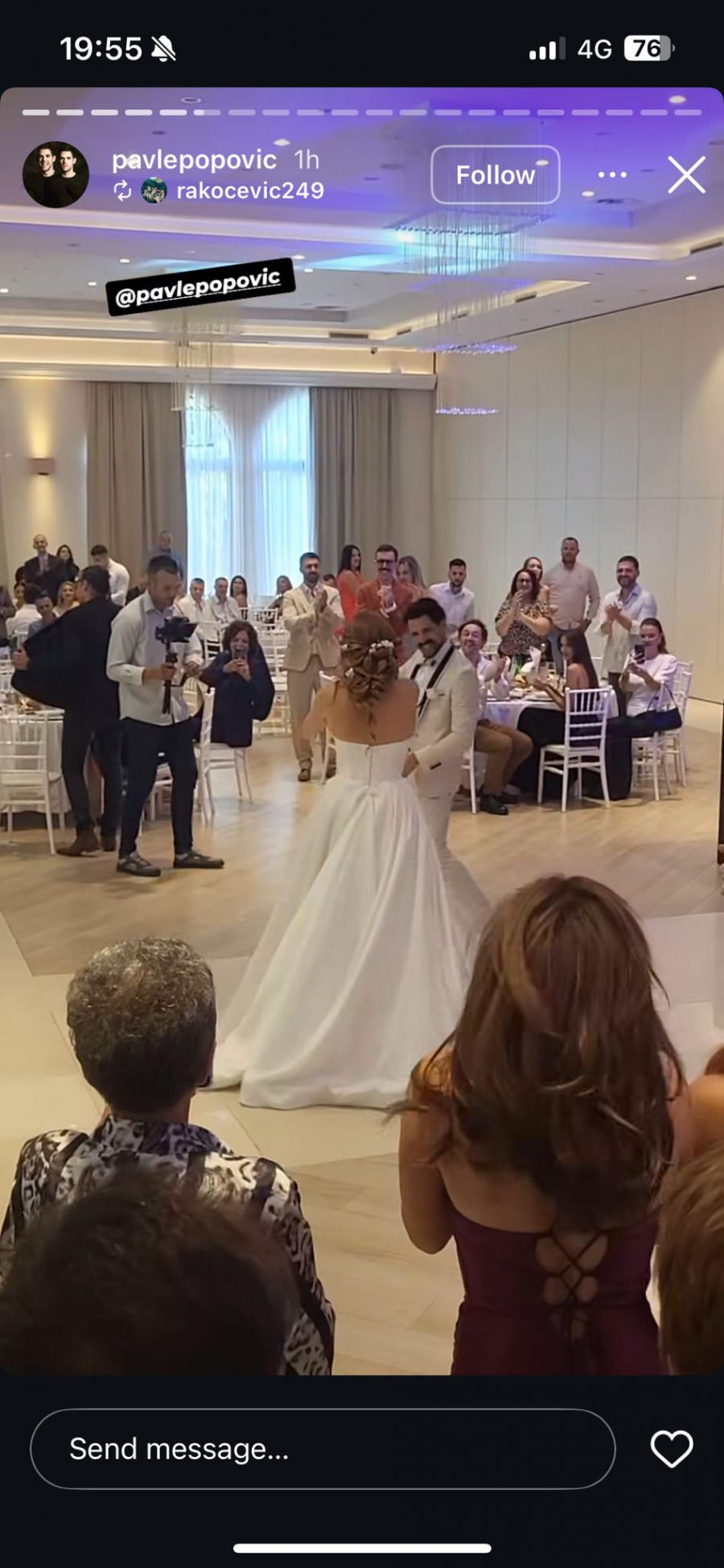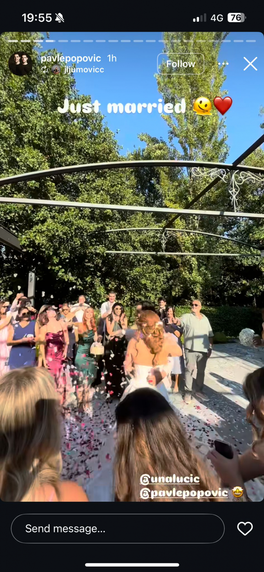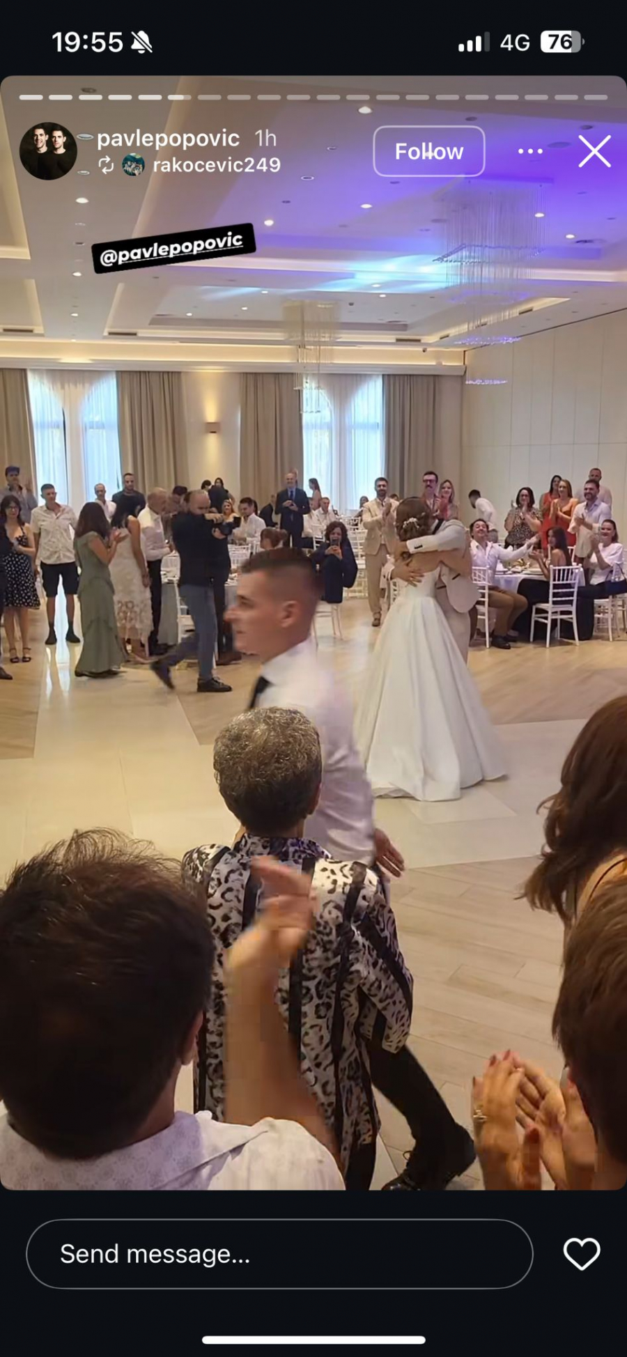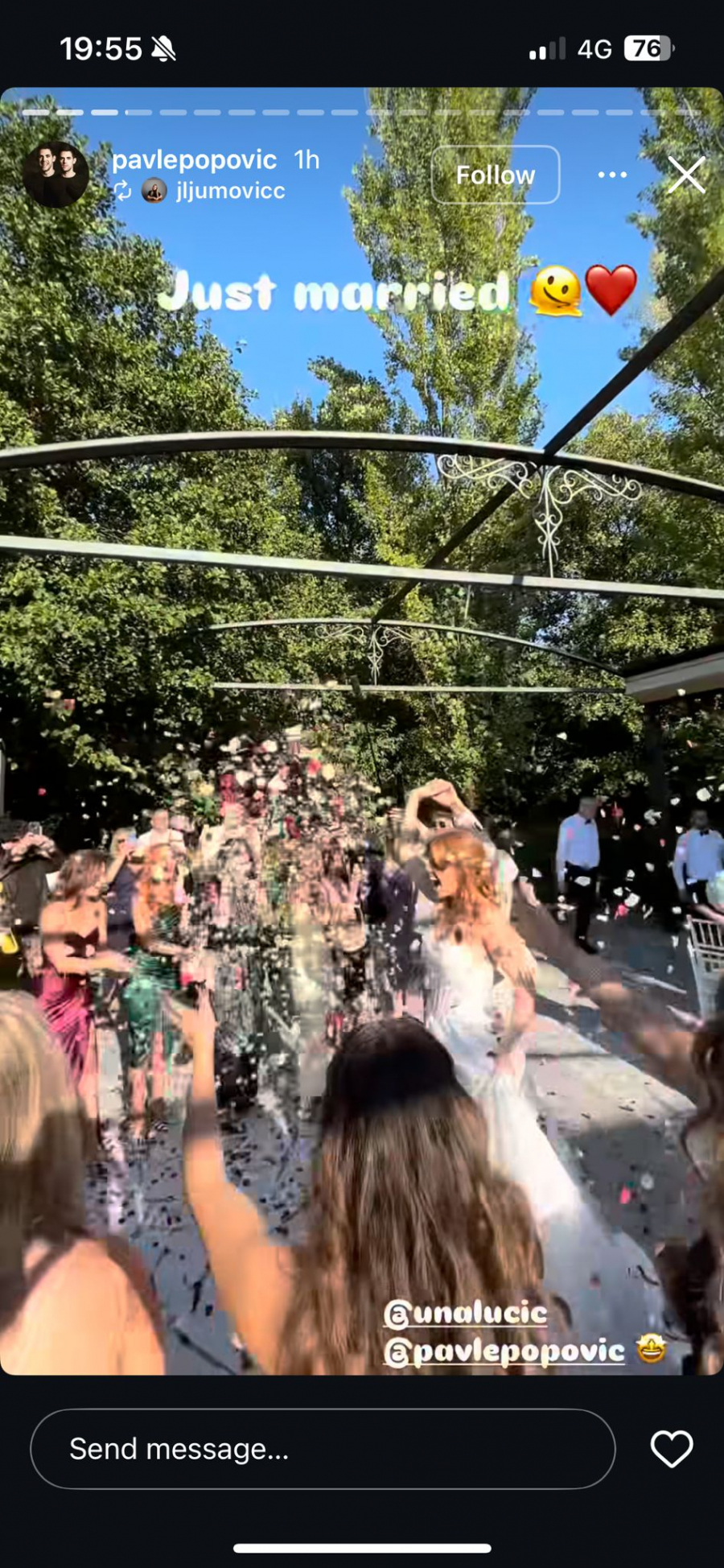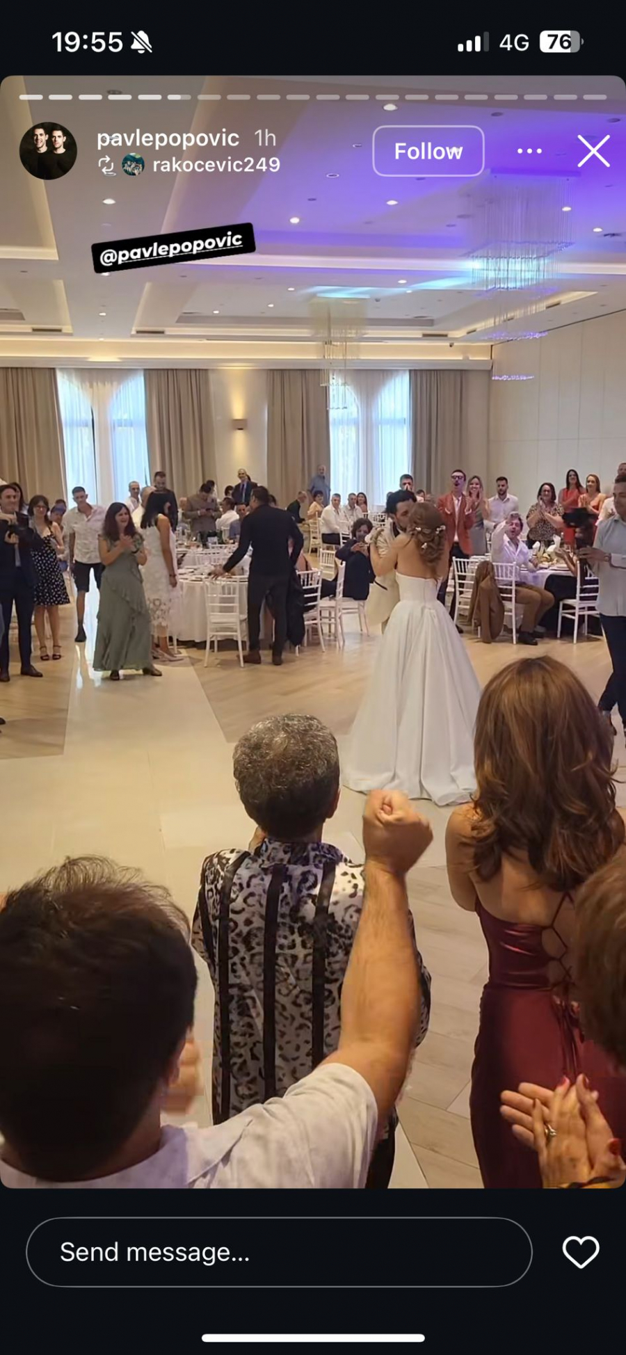 Mlada se pojavila u beloj venčanici i imala je opuštenu pletenicu ispod koje su se prepletali biseri, dok se Pavle odlučio za krem odelo, koje je po rubovima imalo crne detalje, a ceo stajling zaokružio je leptir mašnom.