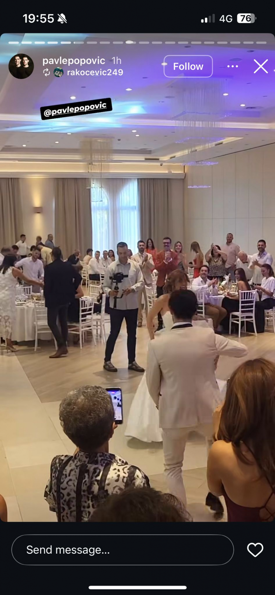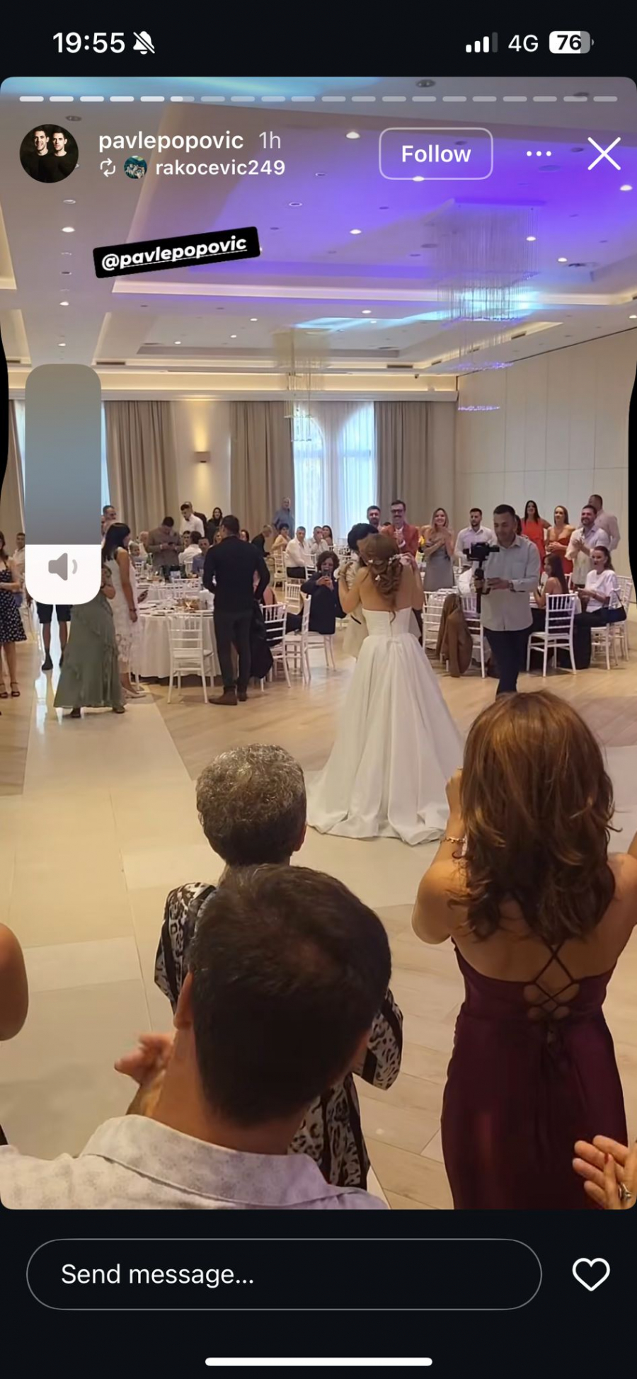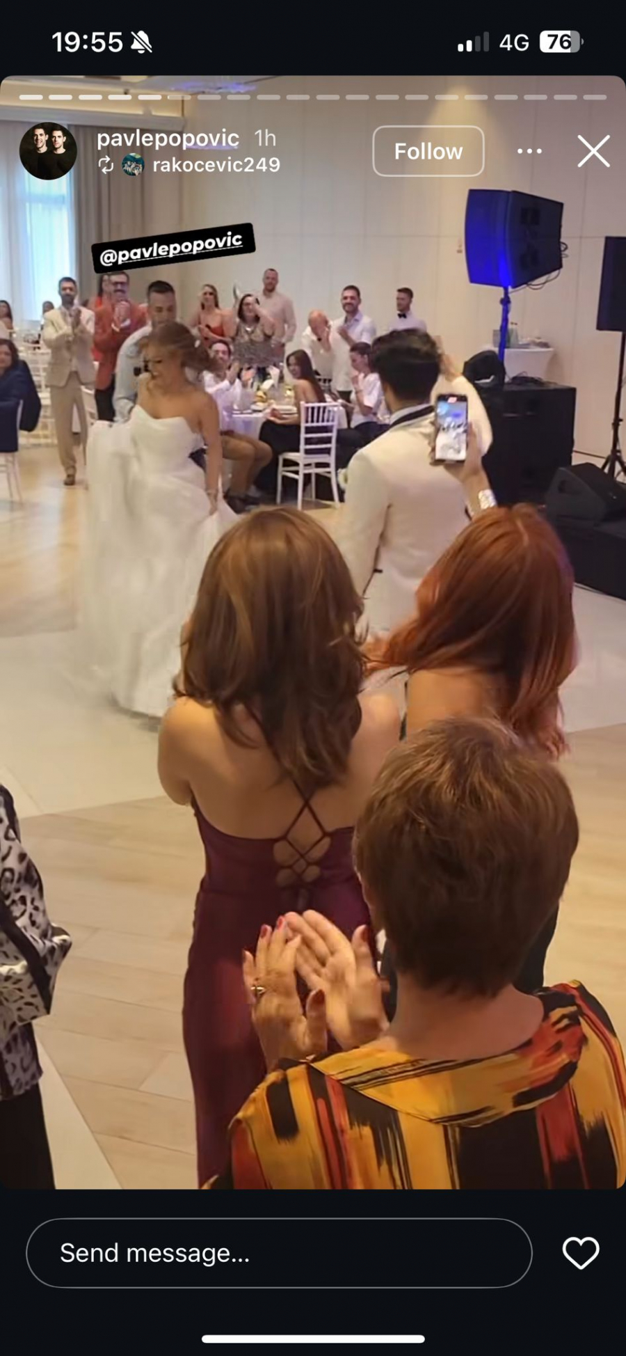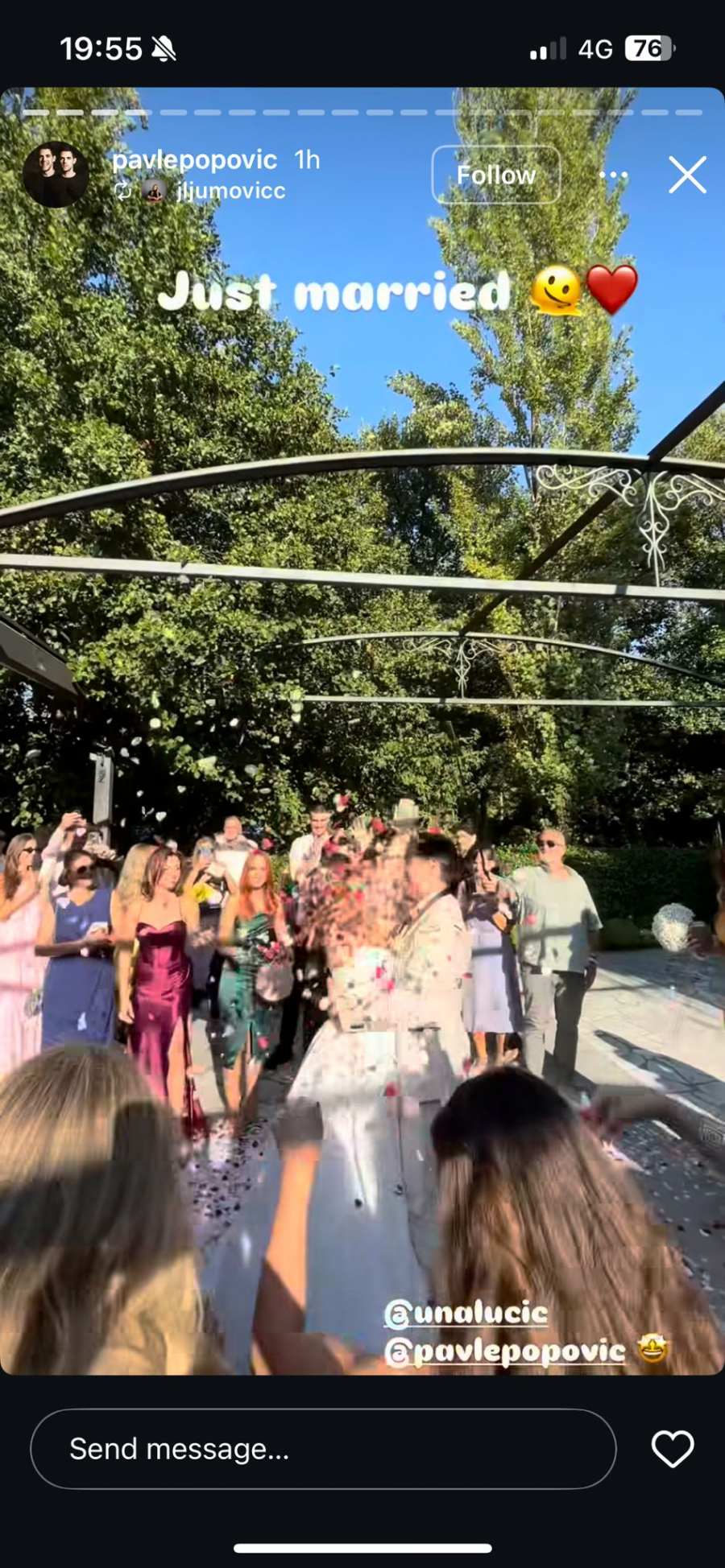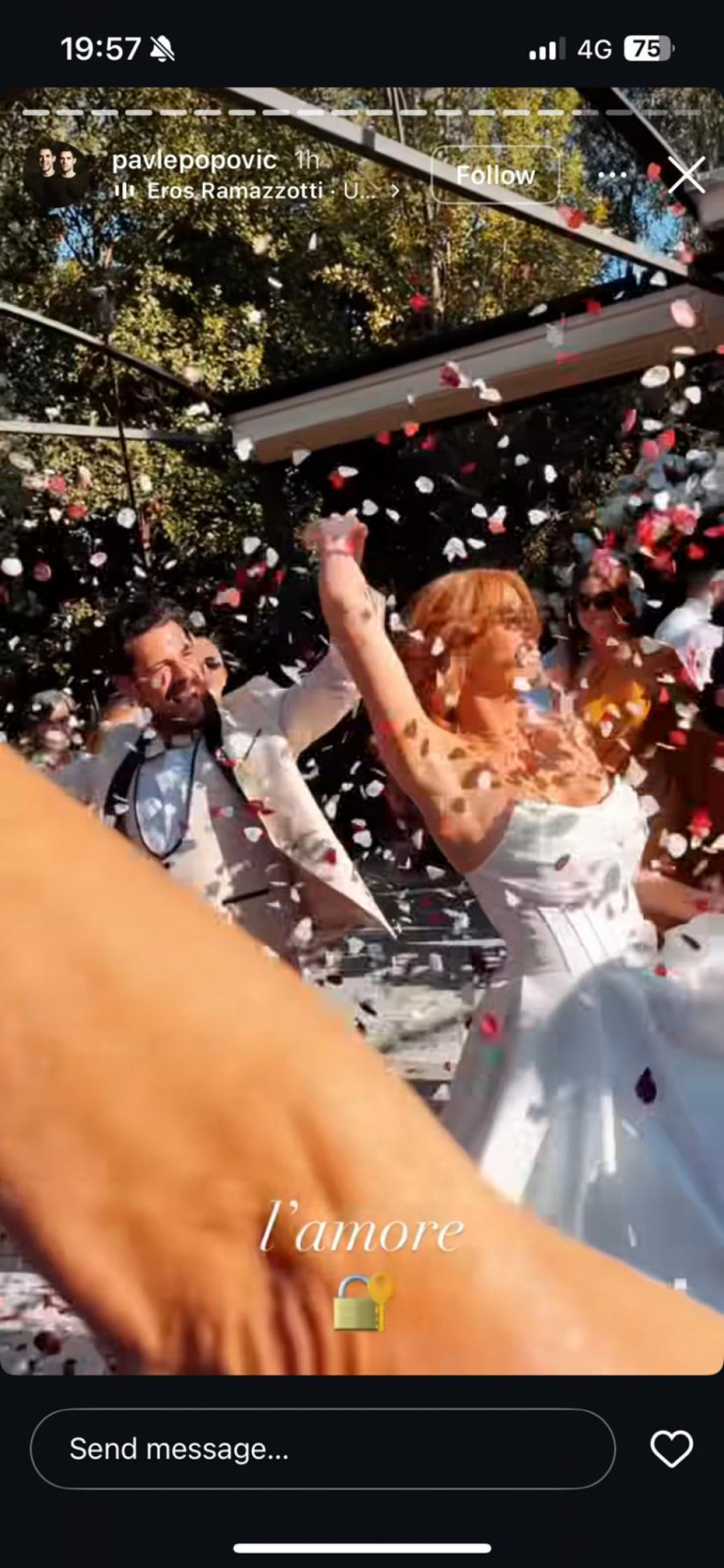 Mlada se pojavila u beloj venčanici i imala je opuštenu pletenicu ispod koje su se prepletali biseri, dok se Pavle odlučio za krem odelo, koje je po rubovima imalo crne detalje, a ceo stajling zaokružio je leptir mašnom.
