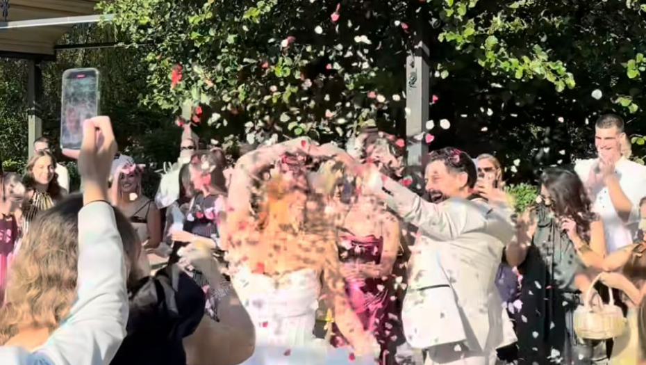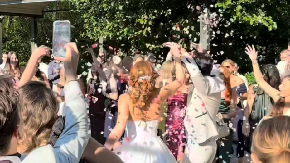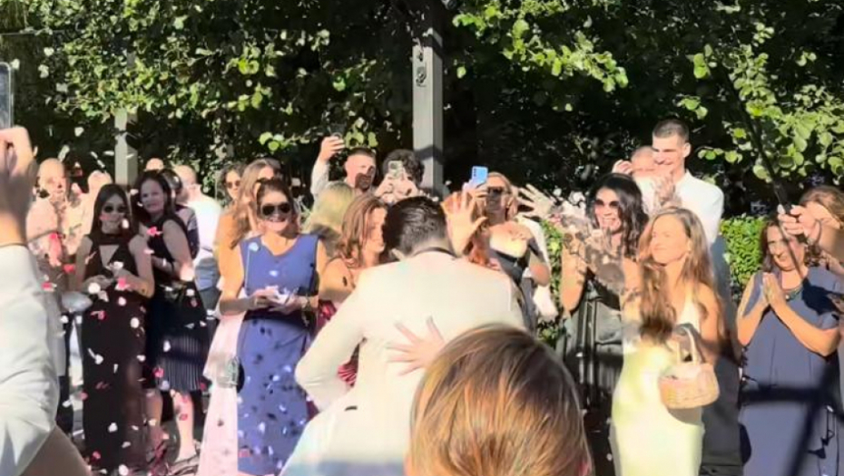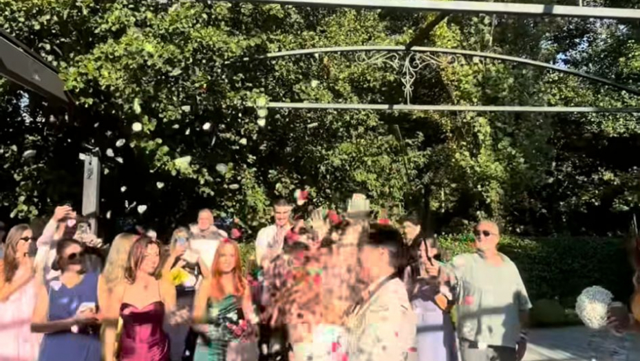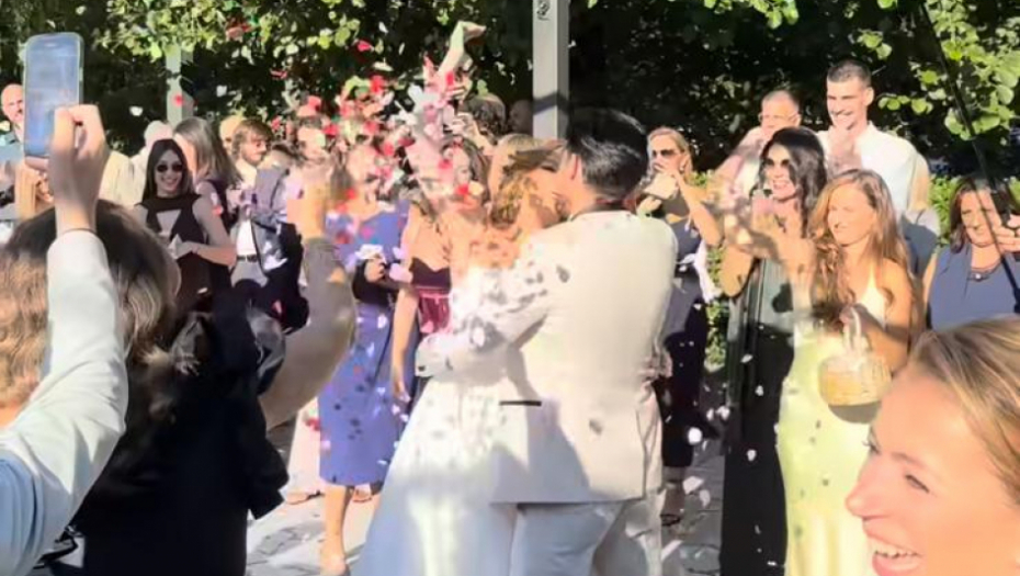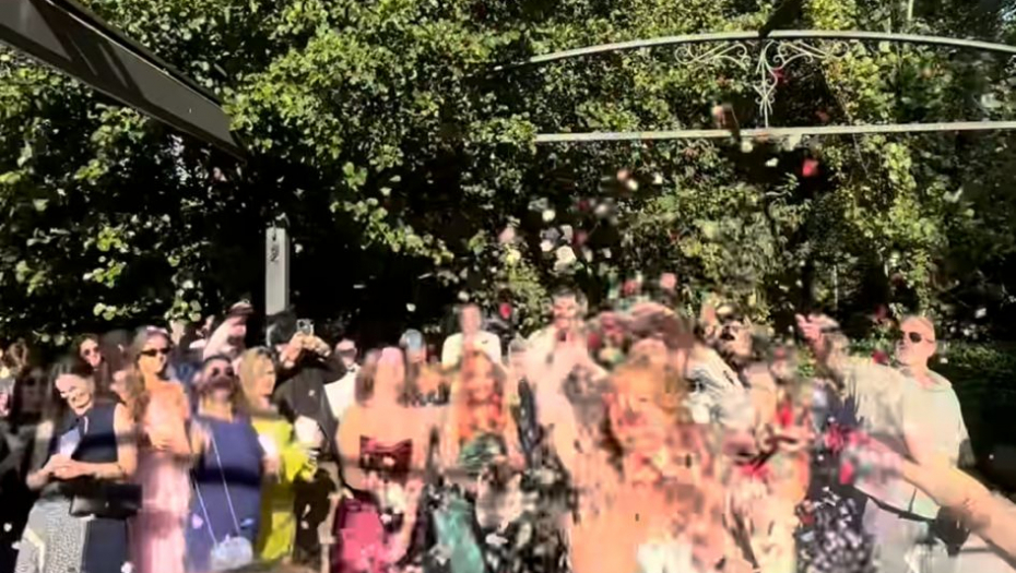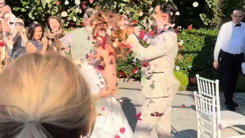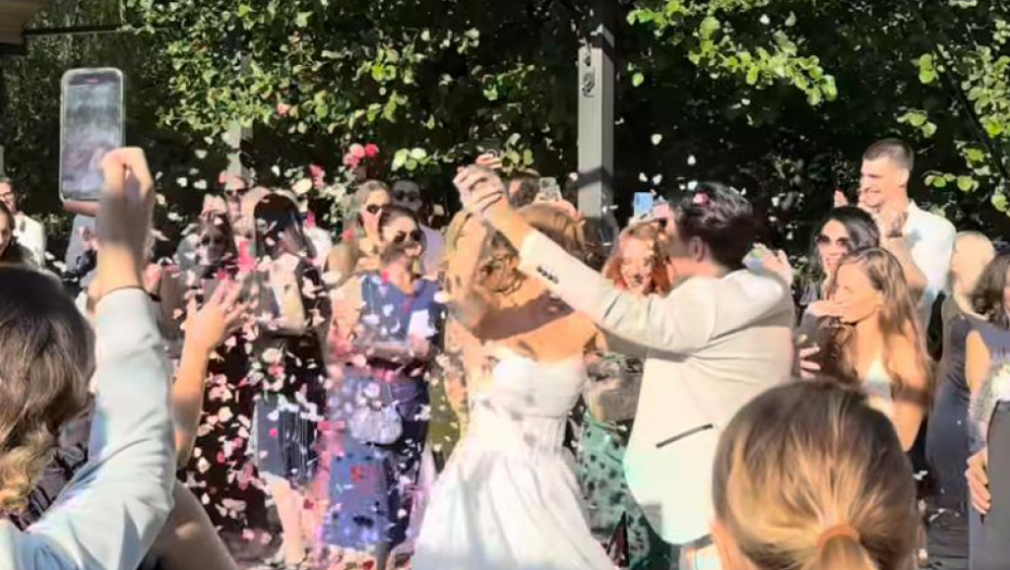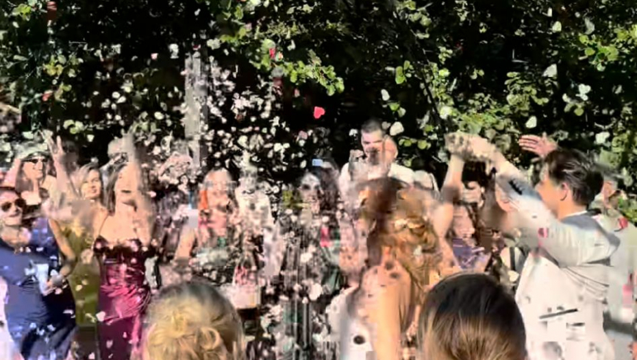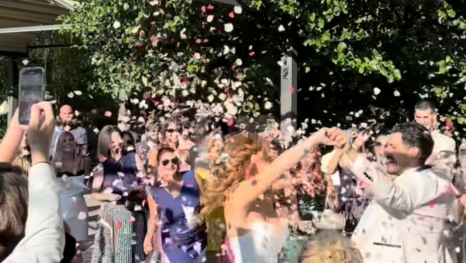 Nakon što su sklopili građansko venčanje, okupljeni su ih obasuli konfetama.