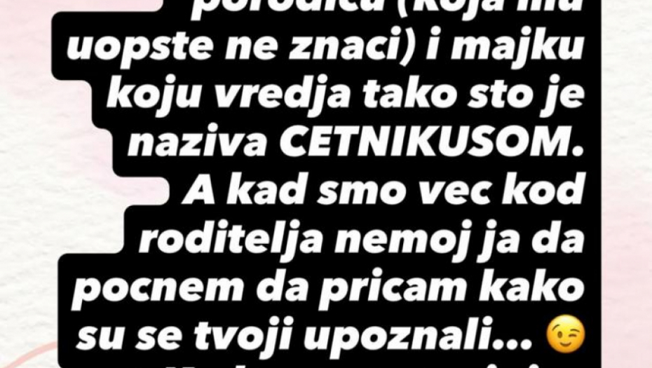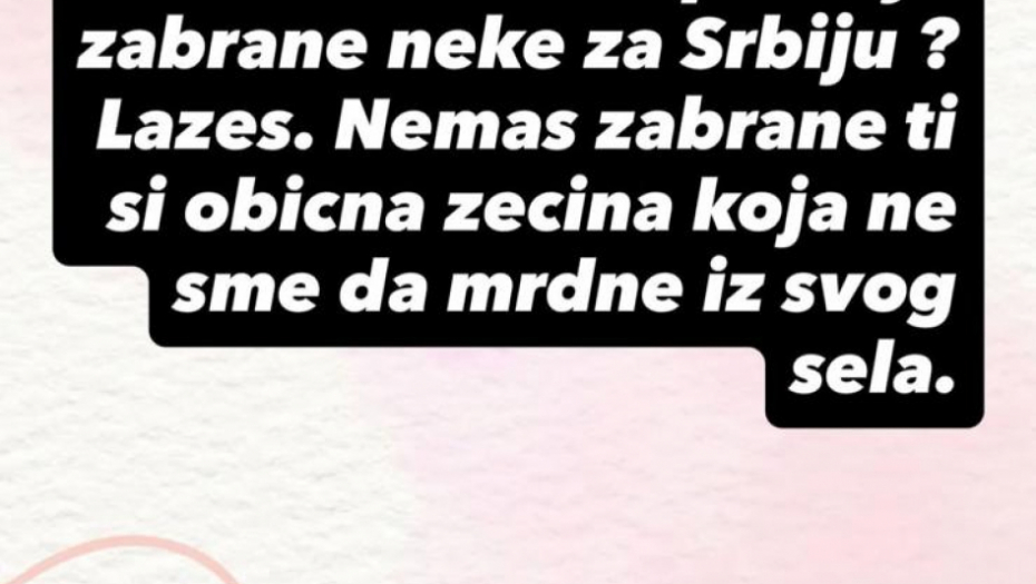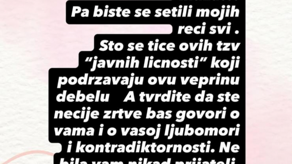 Nije štedela reči i u nizu Instagram storija uputila je teške optužbe i uvrede na njegov račun, naglasivši da očekuje reakciju nadležnih organa.