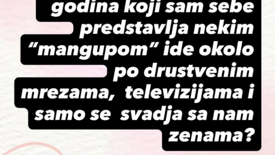 - Da li ste videli ikad da momak od 30 i kusur godina koji sam sebe predstavlja nekim "mangupom" ide okolo po društvenim mrežama, televizijama i samo se svađa sa nama ženama?! - zapitala se Nikolićeva.