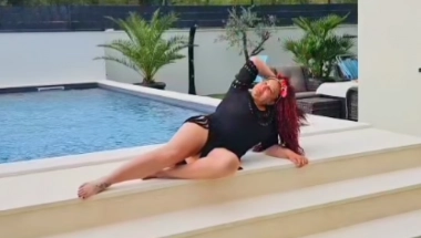 Stoja je nedavno odlučila da pokaže svojim pratiocima deo svog prelepog imanja, koje je u potpunosti preuredila. Posebnu pažnju privukao je veliki bazen, pored kojeg je sada ispozirala, uživajući u letnjoj atmosferi.