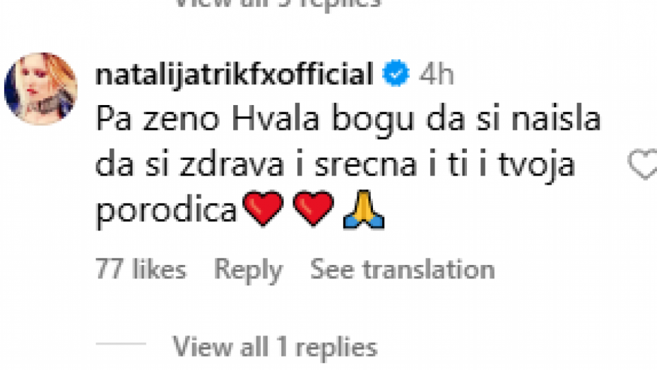 Tim povodom se oglasila i Natalija ispod jednog posta na Instagramu i javno joj se obratila.