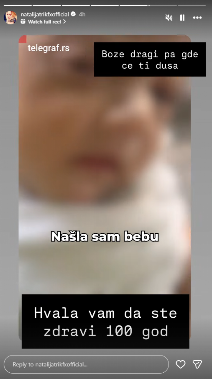 Nakon što je cela Srbija ostala u neverici kada su jutros stigle jezive vesti o bebi od svega nedelju dana, koja je bačena kod kontejnera u Zemunu, oglasila se pevačica Natalija Trike Fx i uputila poruku ženi koja je spasila bebu.