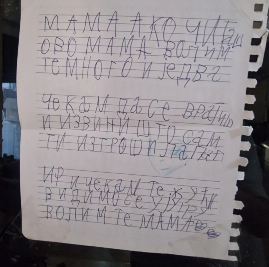 - Mama, ako čitaš ovo, volim te mnogo i jedva čekam da se vratiš, Izvini što sam ti istrošila papir i čekam te kući. Vidimo se ujutru, volim te mama - pisalo je u poruci koju je Ana objavila na svom Instagram profilu.
