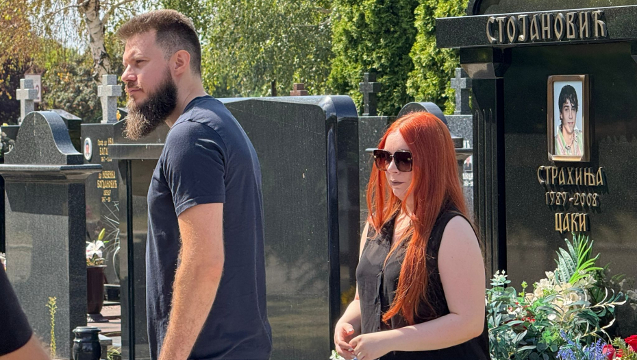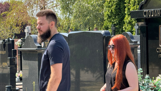 Suzana Jovanović stigla je na pomen Saši Popoviću zajedno sa sinom Danijelom i ćerkom Aleksandrom, a tužan prizor rasplakao je prisutne na Bežanijskom groblju.
