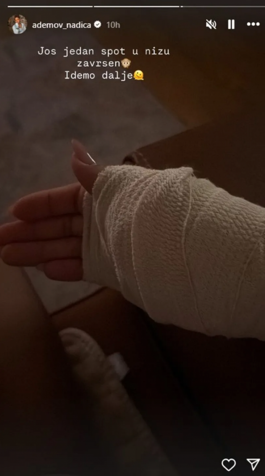 Tim povodom se oglasila na Instagramu kasno sinoć i pokazala ruku u zavoju.