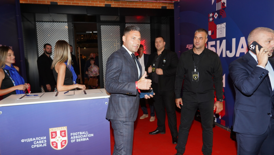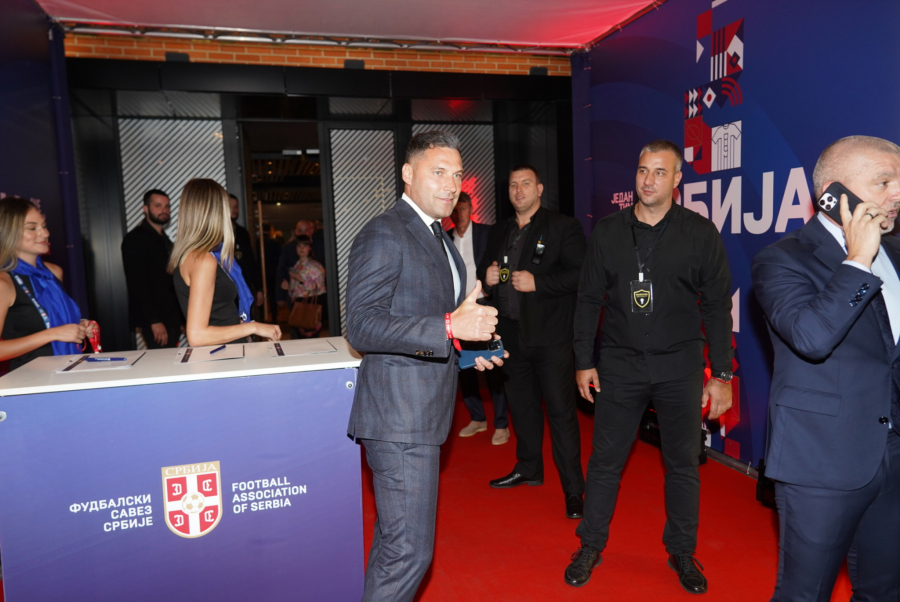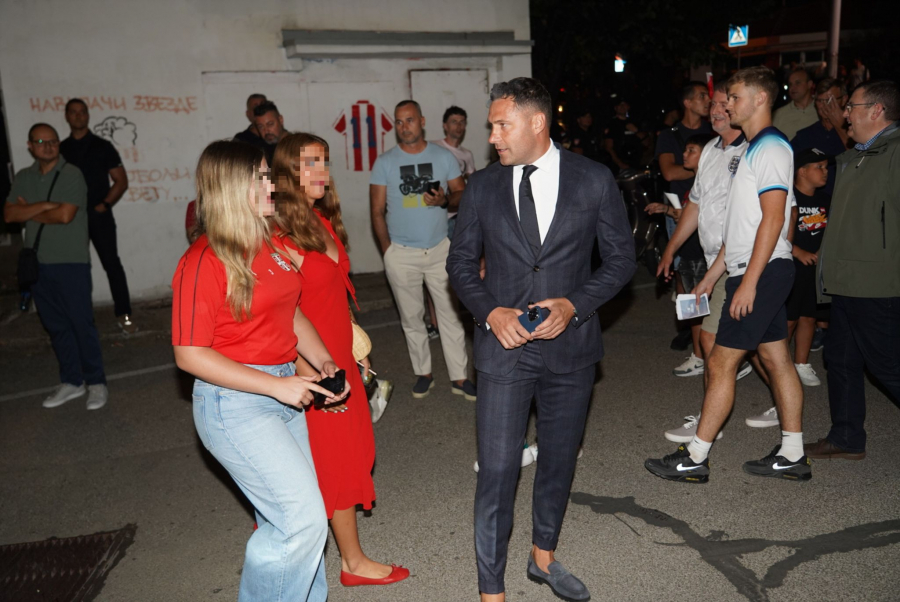Fudbalski menadžer stigao je sa svojim naslednicama Atinom i Nikom Tošić koje su ponele crvene boje, dok je tata bio u elegantnom odelu.