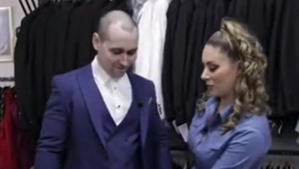 Dok je probao odelo izašao je da ga svi vide, ali voditeljki je zapao za oko šlic koji mu je bio otkopčan, pa se ponudila da mu pomogne.