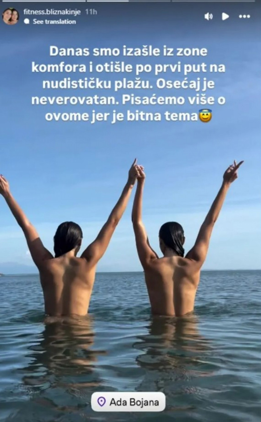 - Danas smo izašle iz zone komfora i prvi put otišle na nudističku plažu. Osećaj je neverovatan - napisale su fitnes bliznakinje uz fotografiju.