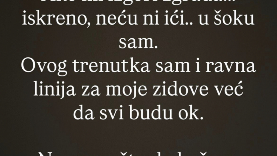 - Ako mi izgori zgrada... Iskreno neću ni ići, u šoku sam. Ovog trenutka sam i ravna linija za moje zidove, već da svi budu ok. Ne znam šta da kažem - dodala je Kockarova.