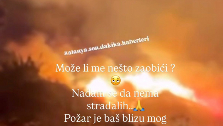 "Može li me nešto zaobići? Nadam se da nema stradalih. Požar je baš blizu mog stana. Vatra je baš jak. Večeras letim tamo", napisala je Kija uz tužne emotikone i emotikon molitve.