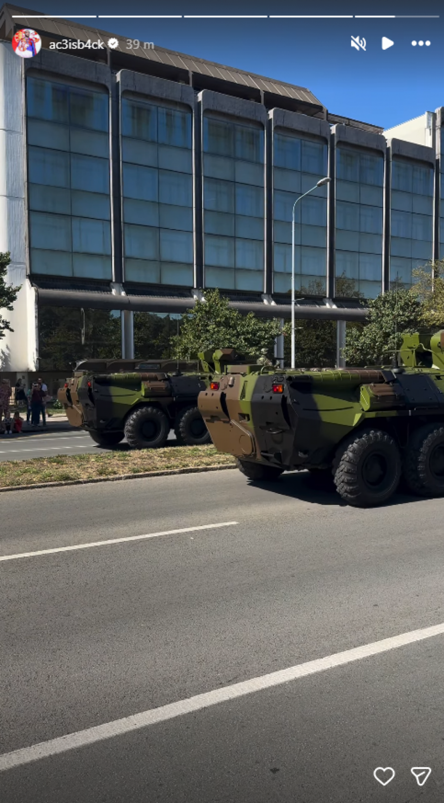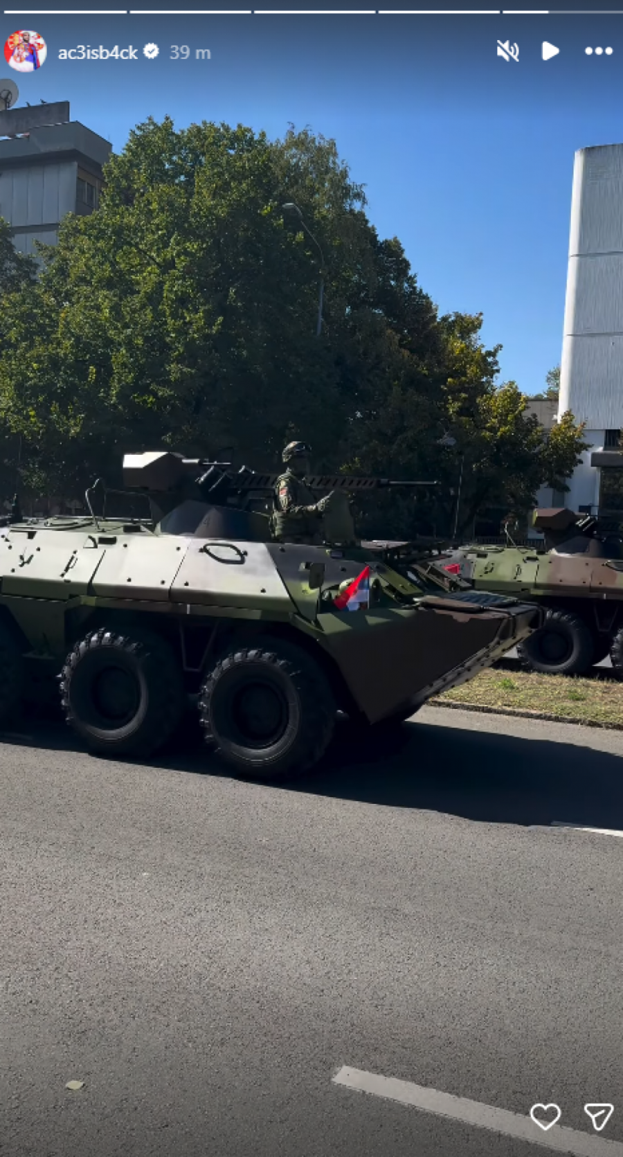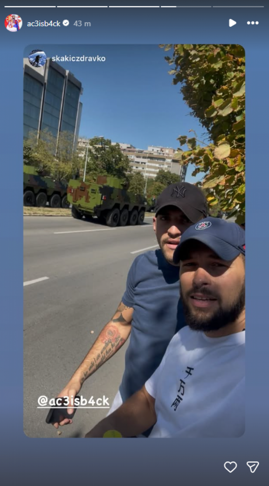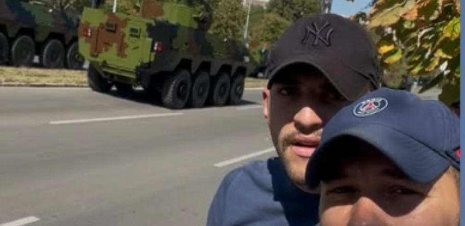 Tokom događaja pozirao je sa prijateljem, a fotografiju je objavio na Instagram storiju, gde je kasnije objavio i snimak tenkova.