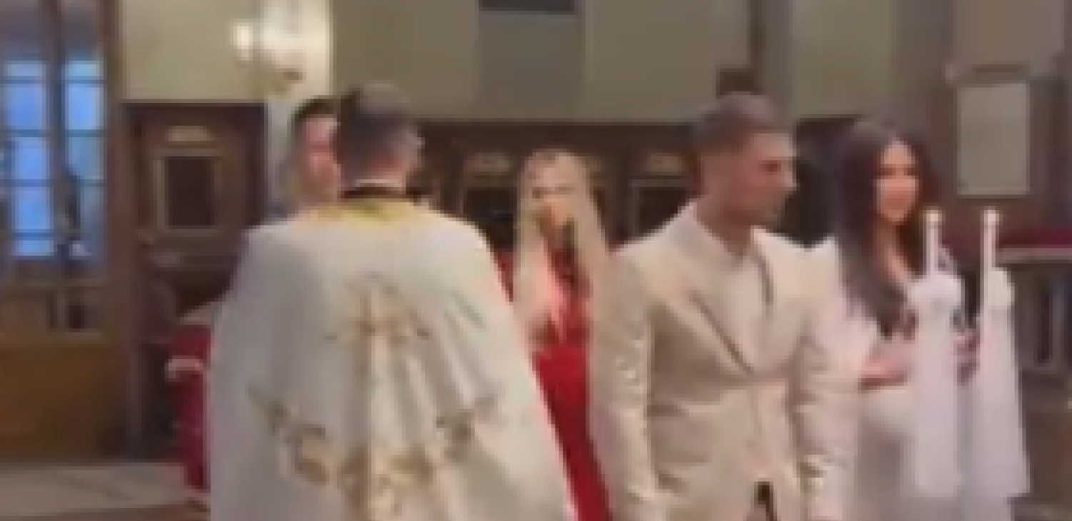 Mlada je blistala u beloj venčanici, dok je sin čelnika Pinka nosio bež odelo.
