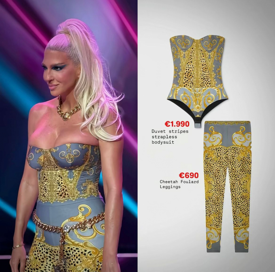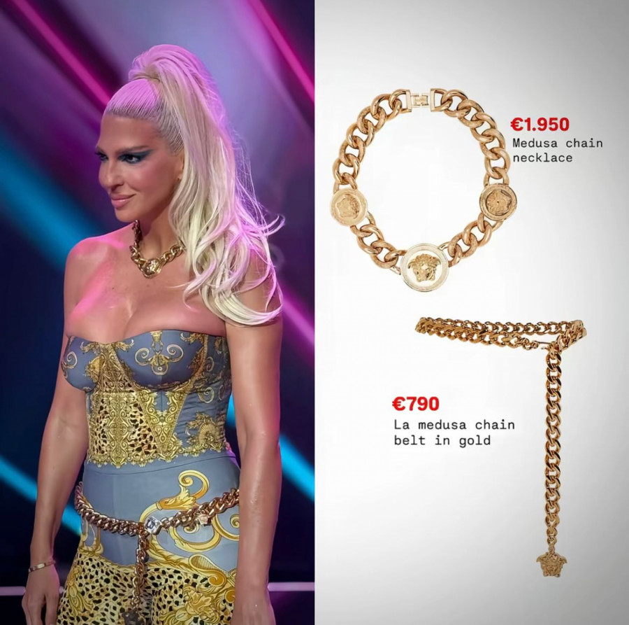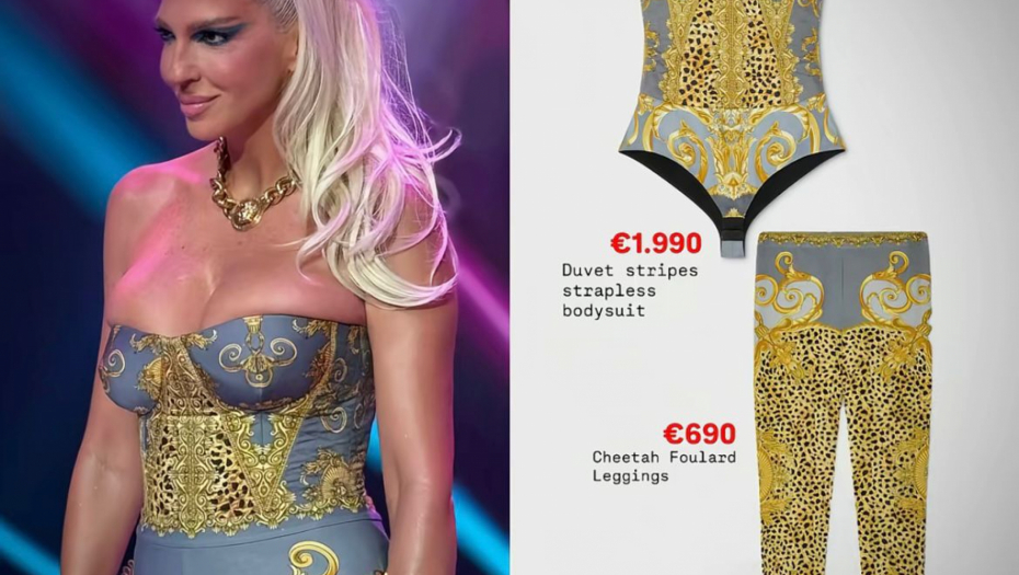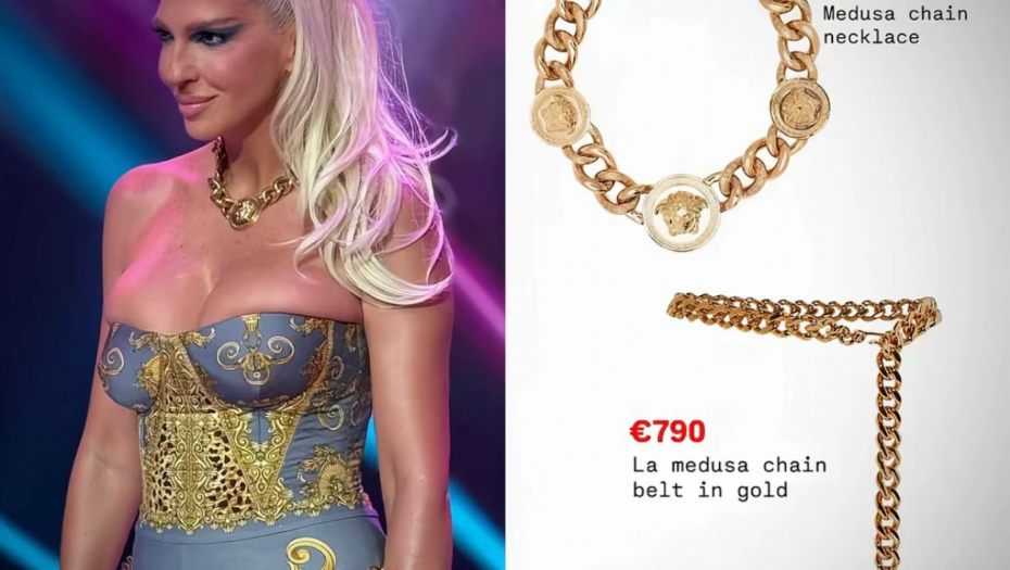 Naime, Jelena je došla u Versaće pantalonama i korsetu koji zajedno izgeda kao kombinezon. Za cenu korseta navodi se iznos od 1.990 evra, dok je za pantalone navodno izdvojila 690e. Ogrlica i pojas za stomak istog brenda zajedno iznose 2.740 evra.