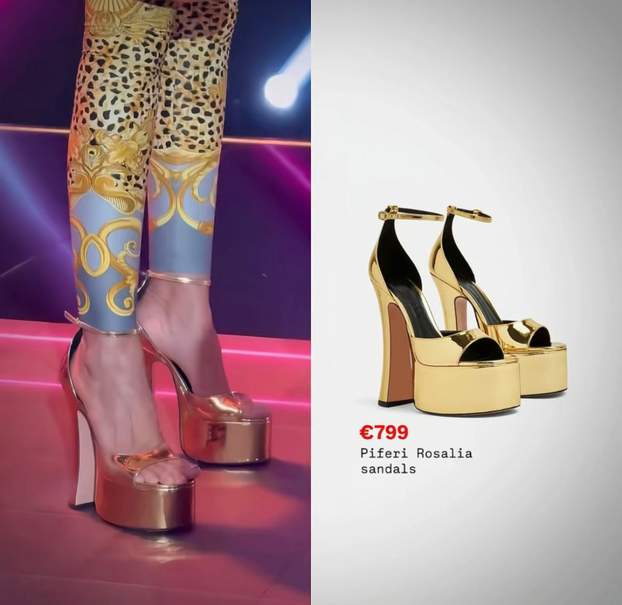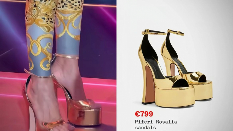 Uz ceo izgled dodala je i zlatnu torbicu od 1.350e i takođe zlatne štikle u iznosu od 799e.