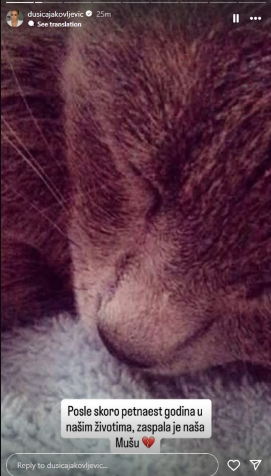 - Posle skoro 15 godina u našim životima zaspala je naša Mušu - napisala je Dušica Jakovljević.