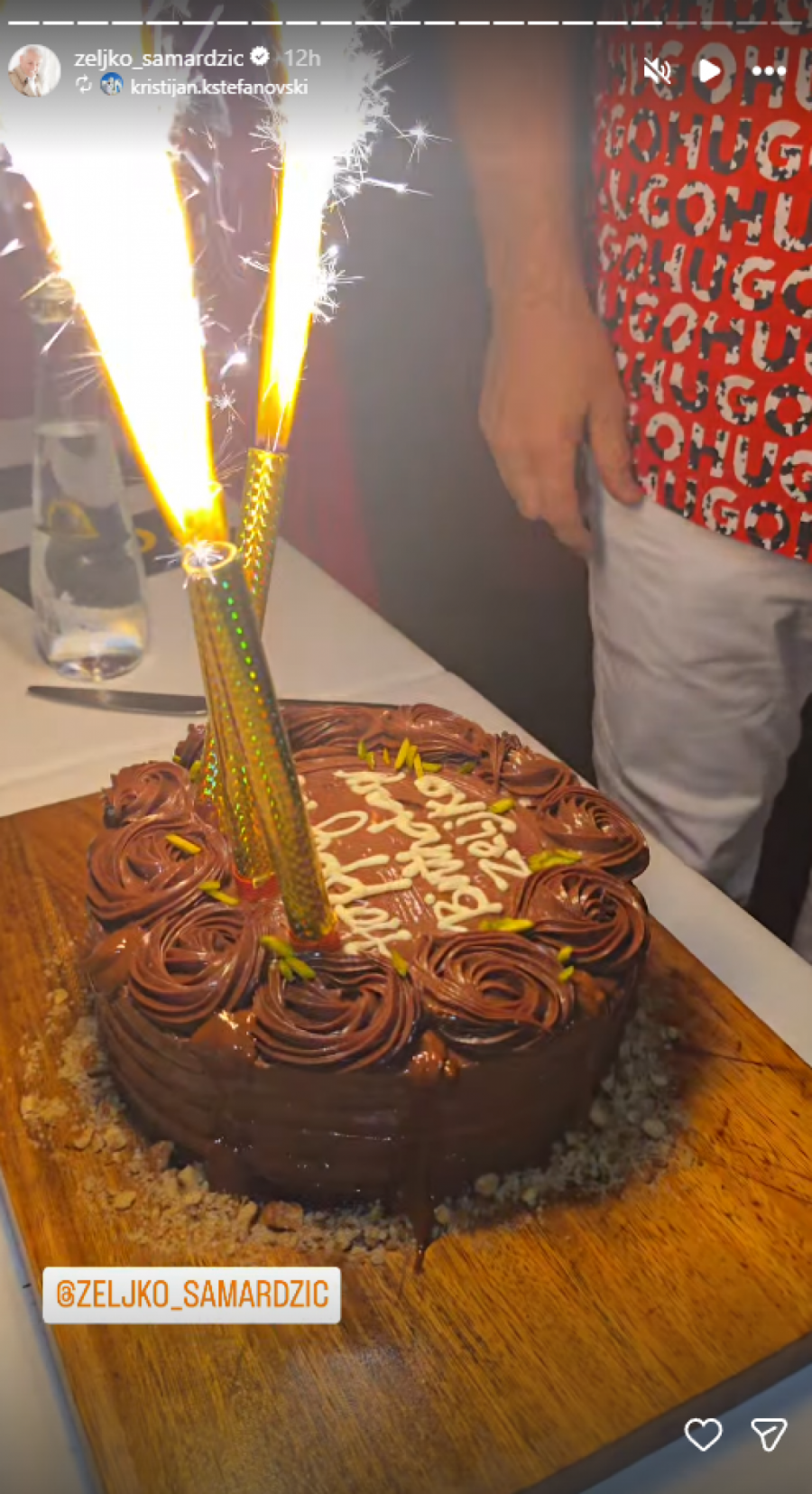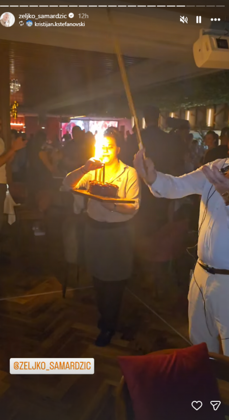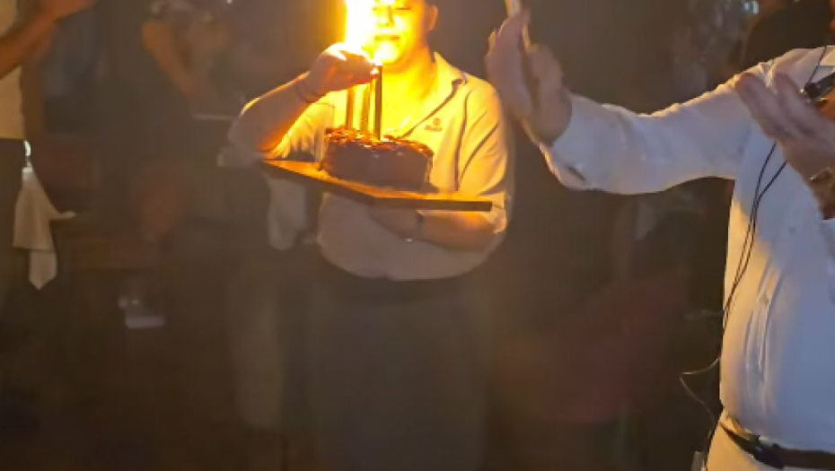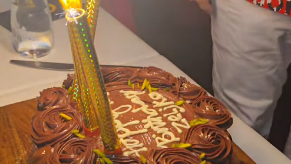 U jednom trenutku, osoblje restorana iznelo je rođendansku tortu, a svi zajedno pevali su rođendansku pesmu.