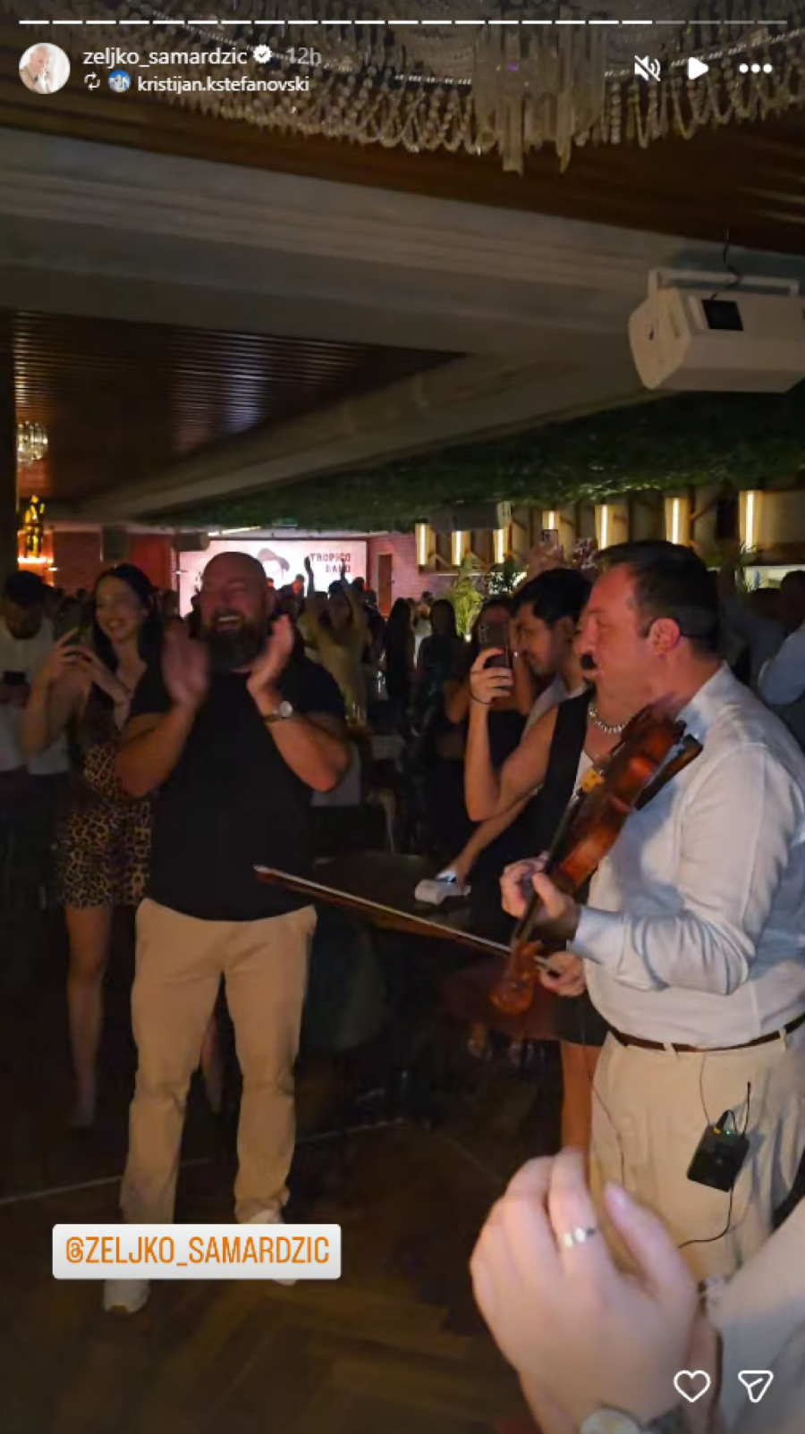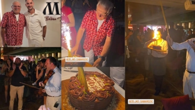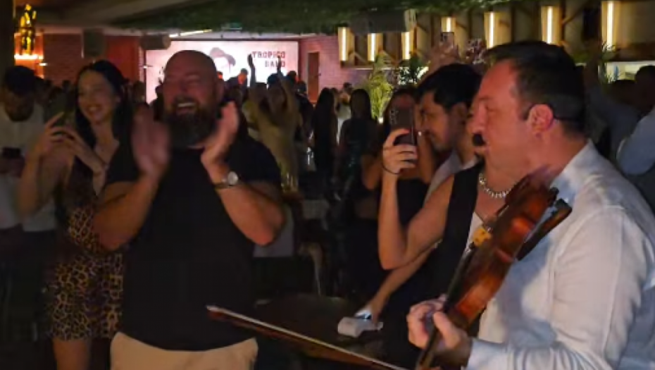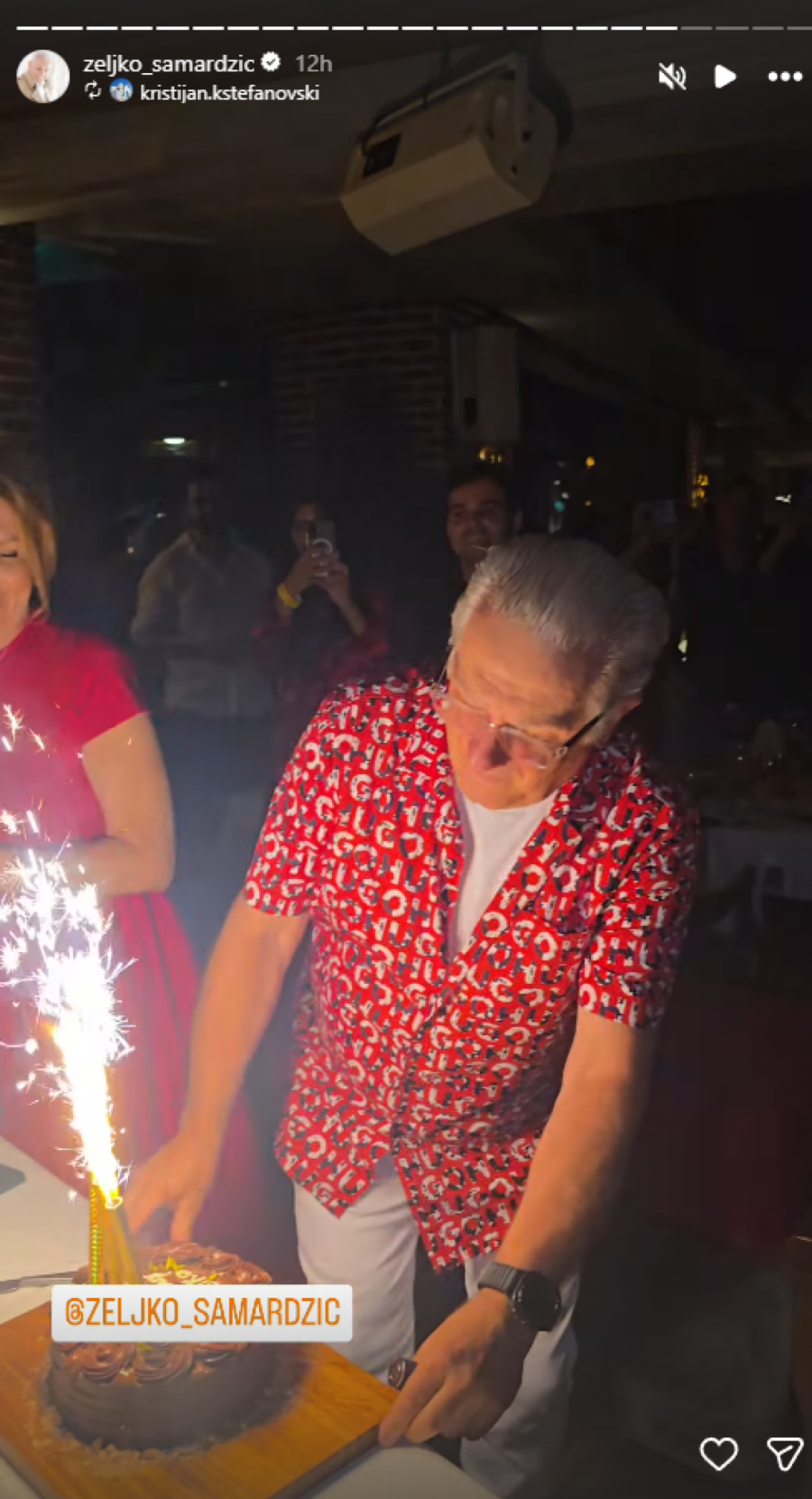 U jednom trenutku, osoblje restorana iznelo je rođendansku tortu, a svi zajedno pevali su rođendansku pesmu.