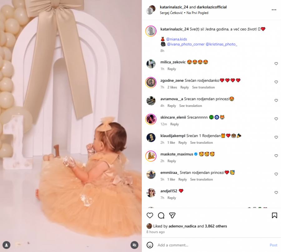 Naime, njihova ćerkica Srna danas puni godinu dana, a folker i njegova supruga su objavili fotografije i video mezimice na Instagram profilima.