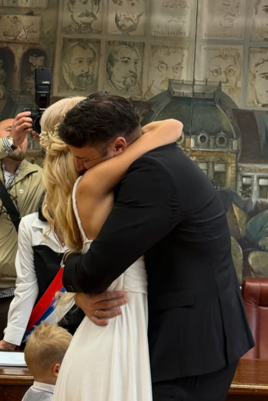 Nakon što su sklopili građanski brak u opštini, mladenci su se uputili ka restoranu gde je bila organizovala proslava, a u međuvremenu su se uhvatili za ruke i pokazali burme.