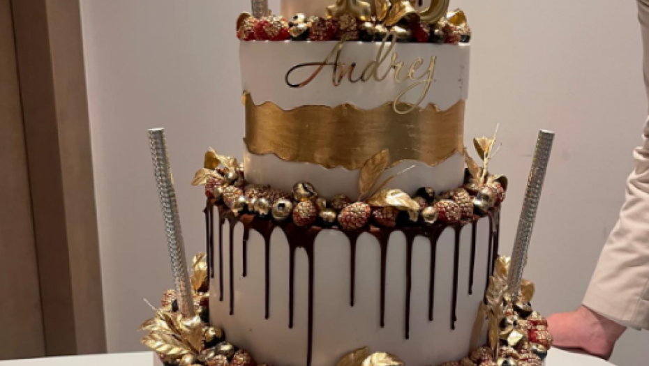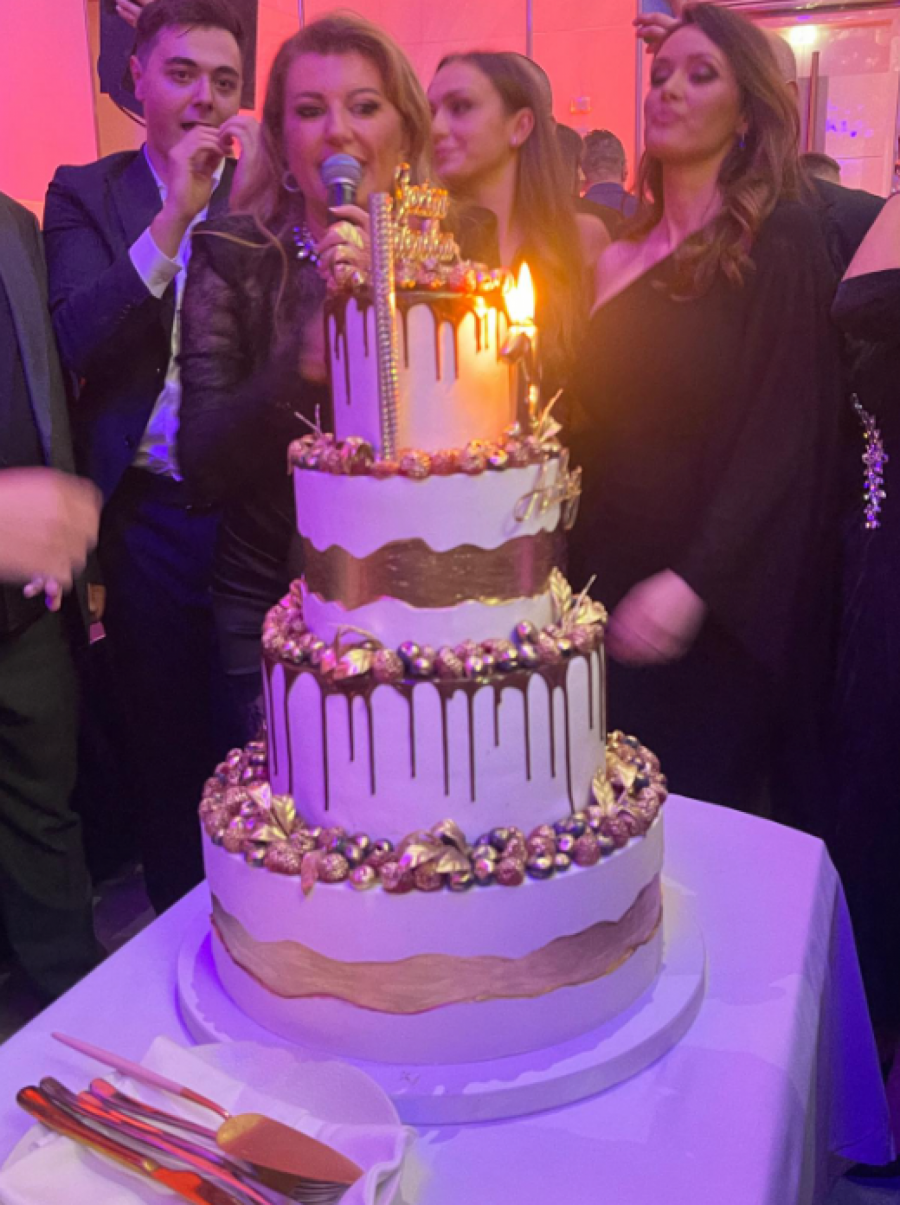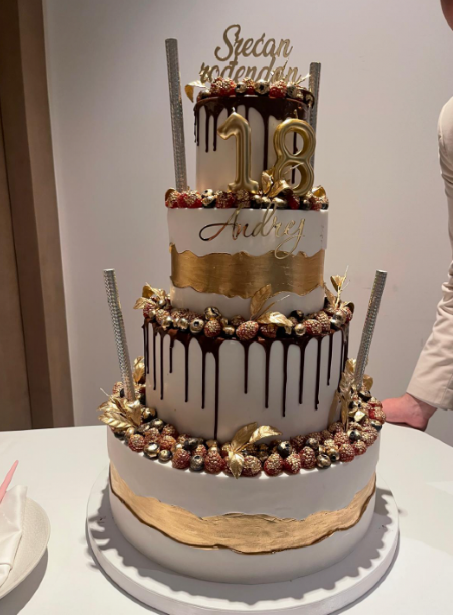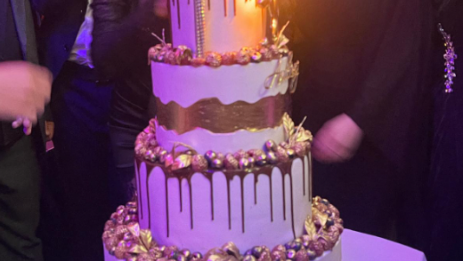 Negde oko ponoći stigla je i torta na pet spratova, ukrašena zletnim detaljima, sa vatrometom.