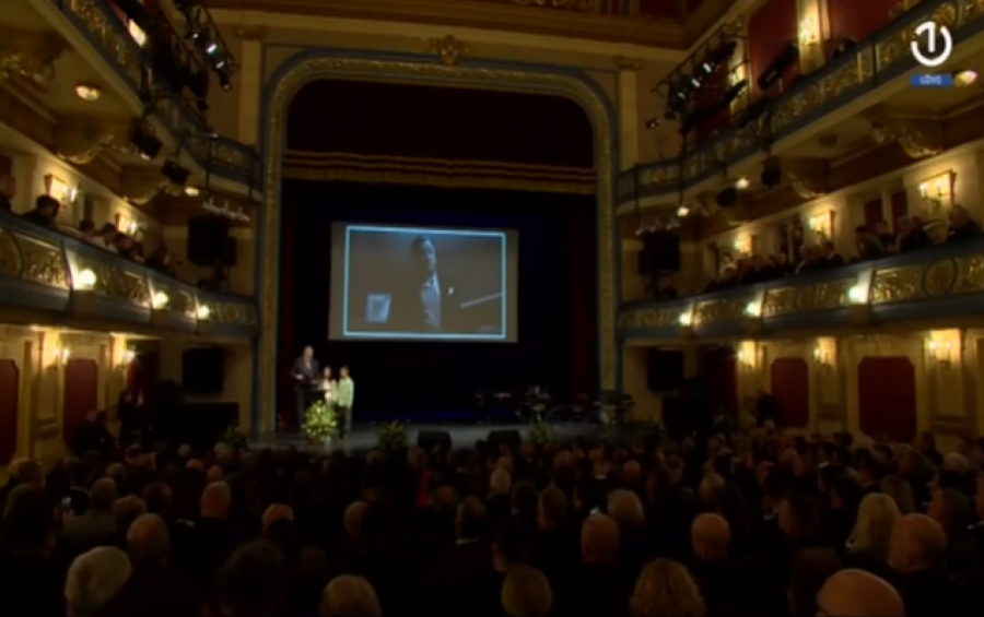 Komemoracija Halidu Bešliću održava se danas u Narodnom pozorištu u Sarajevu, a unuka legendarnog pevača je prva održala govor i svi su u sali plakali.