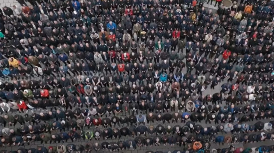 U prvom redu ispred kapele stoje efendije, sin Dino i Dino Merlin, neutešni i tužni.