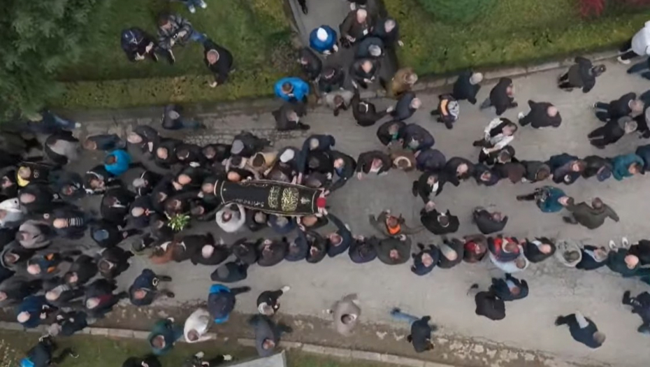 Reka ljudi trenutno prenosi sanduk Halida Bešlića do grobnog mesta, a bolni prizori kidaju dušu.