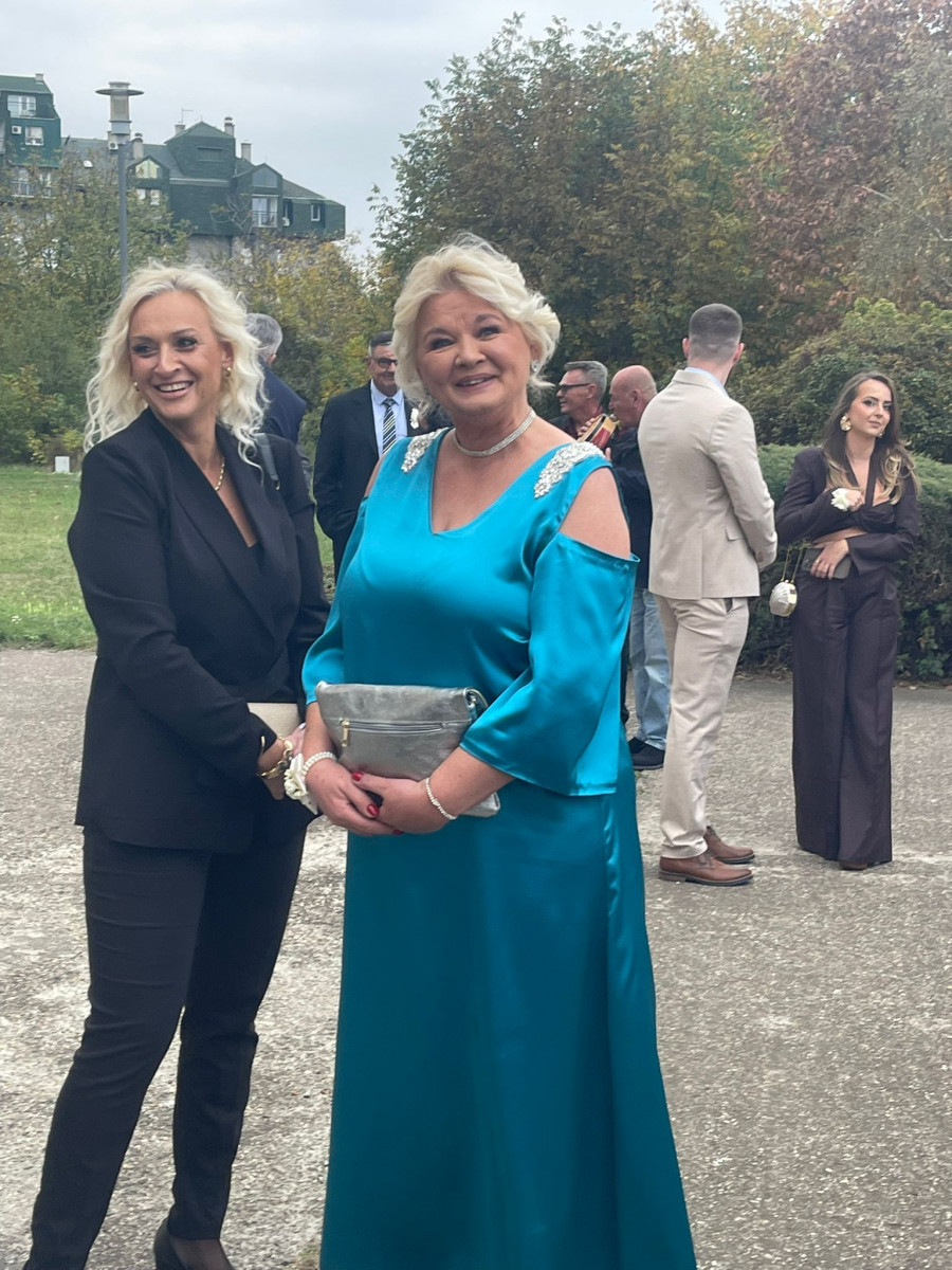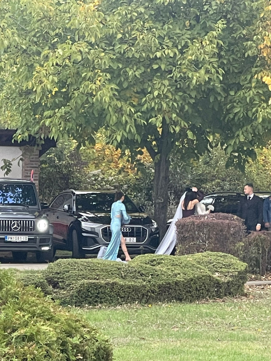 Majka se pojavila u tirkiznoj haljinji, dok se otac odlučio za krem, svetlo odelo.