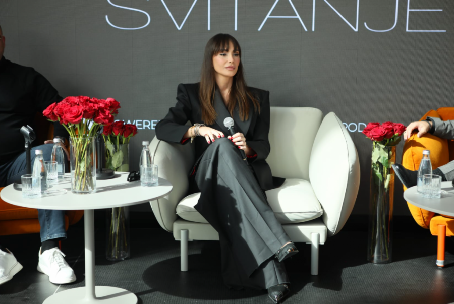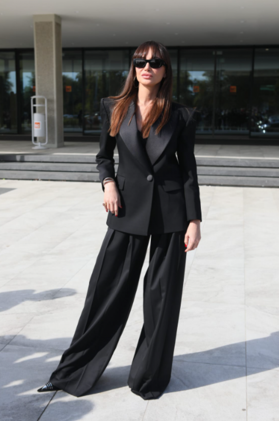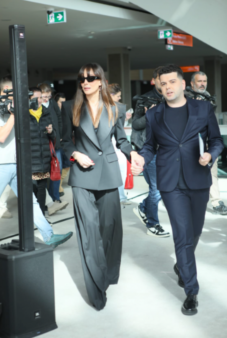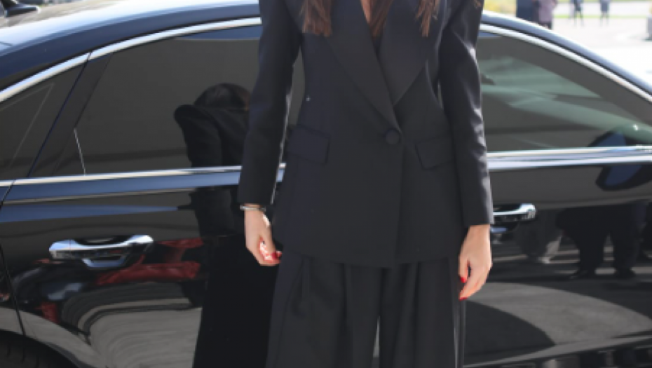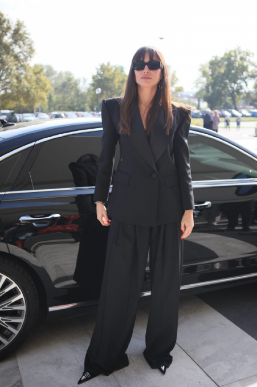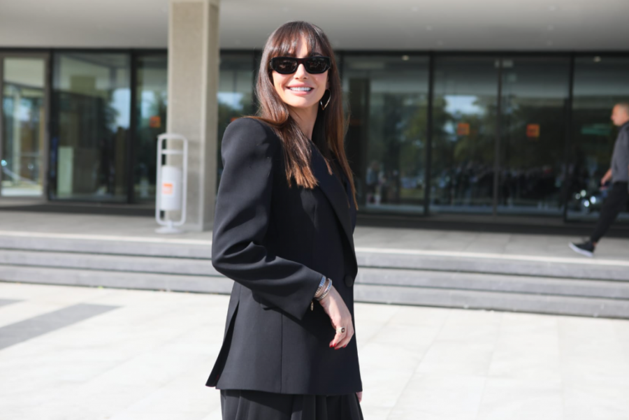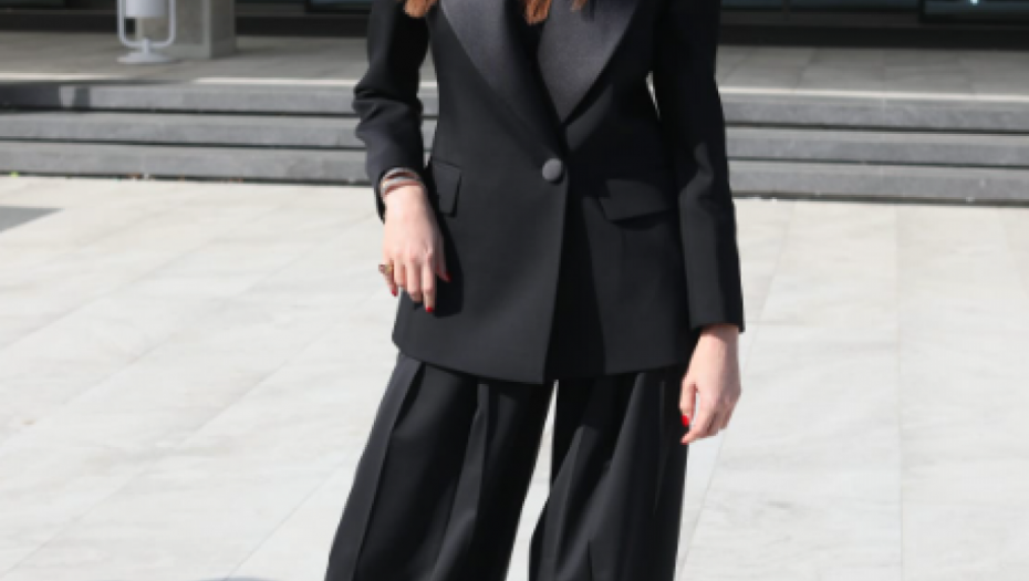 Poznata po dobrom stilu i eleganciji, Emina Jahović je i ovog puta opravdala očekivanja. Za ovu priliku obukla je svečano, crno odelo, a stajling upotpunila je tamnim naočarama, kao i cipelama na štiklu koje idu u špic.
