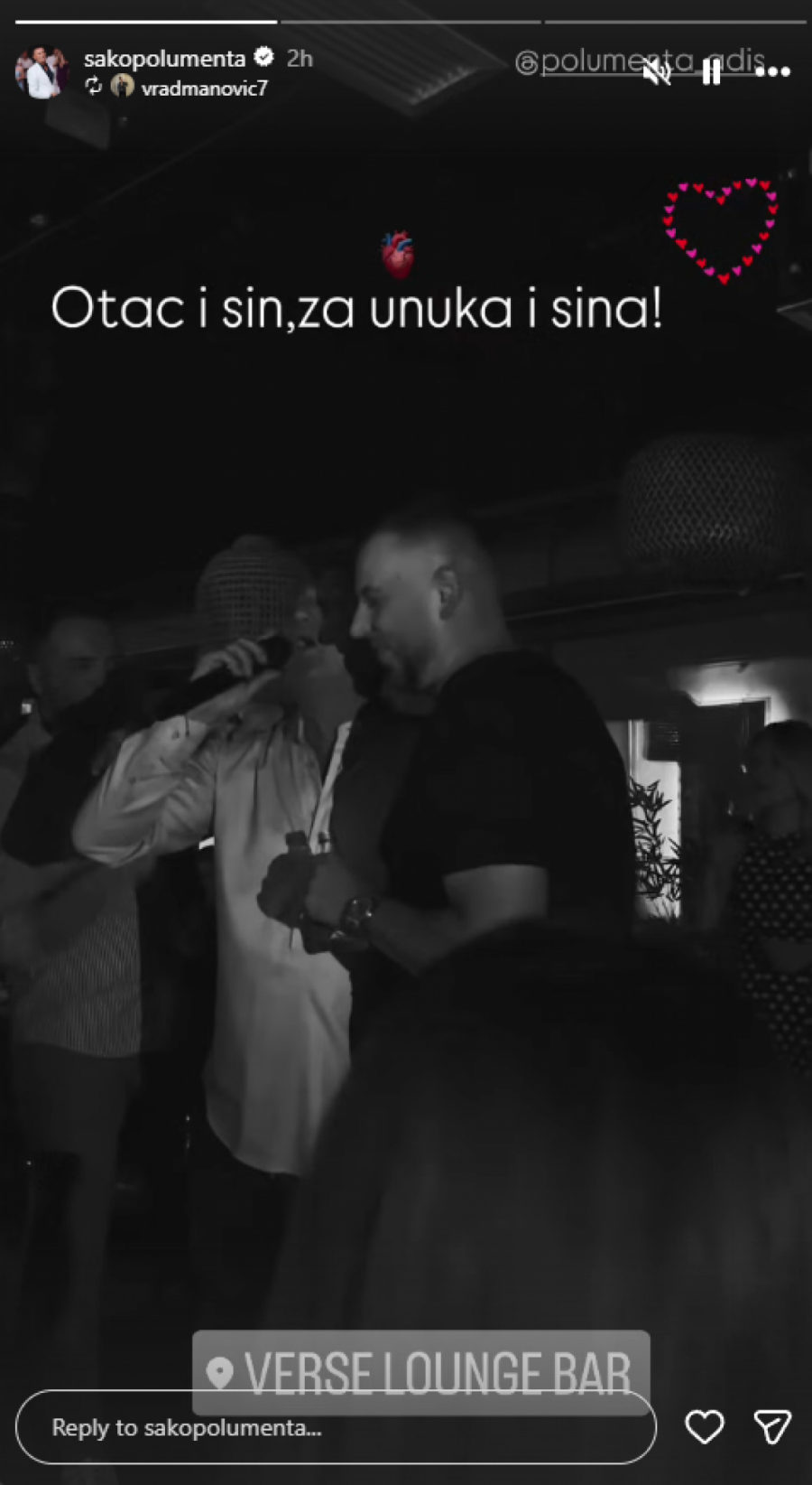 Nedugo zatim, objavio je i snimak na kojem peva sa sinom Adisom u jednom noćnom klubu u kojem su se sa prijateljima i porodicom do zore veselili zbog dolaska još jednog Polumente na svetu.