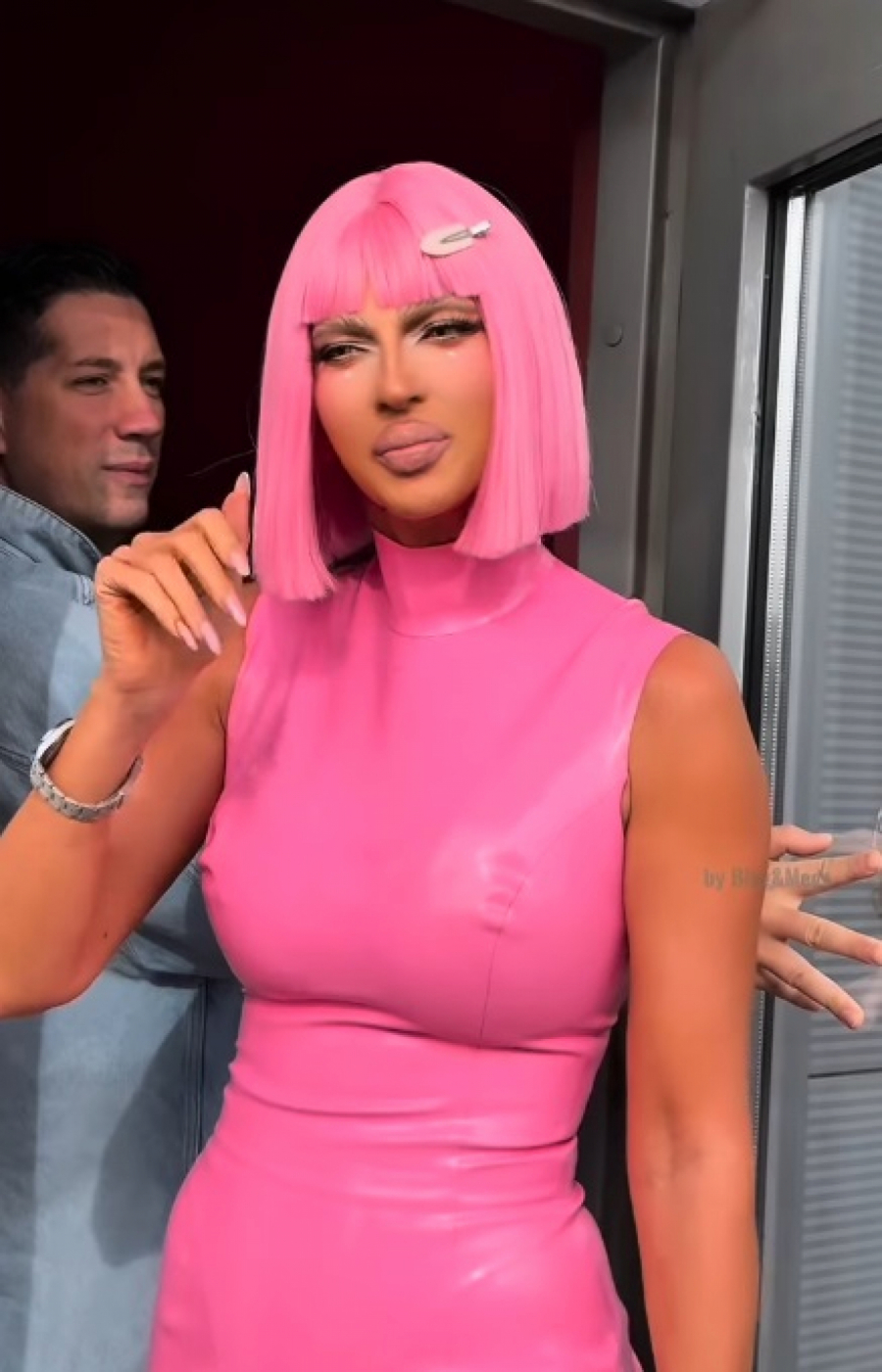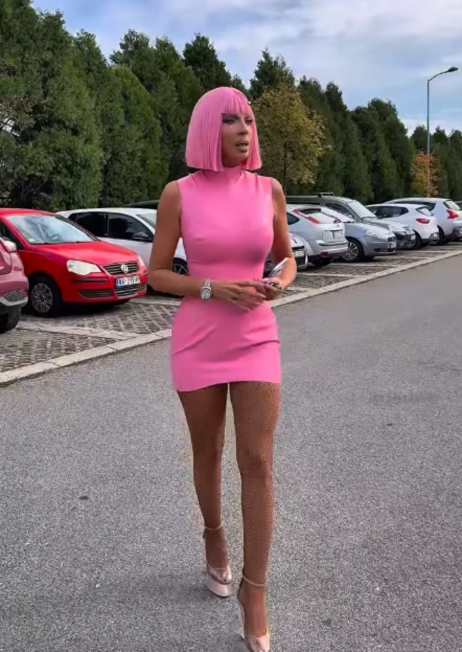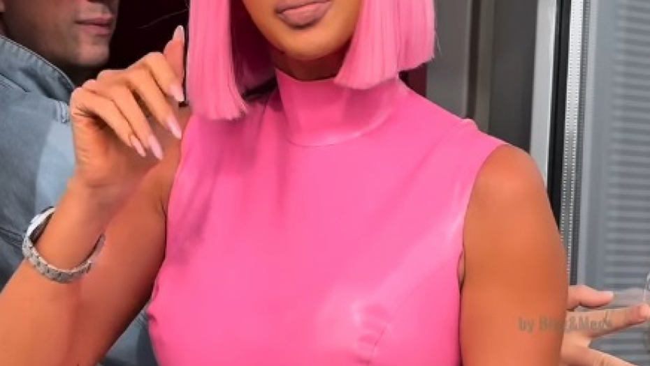 Na nedavnom snimanju emisije "Pinkove zvezde" pojavila se u izazovnoj, uskoj haljini od roze lateksa, koju je savršeno uklopila sa bojom svoje kose.