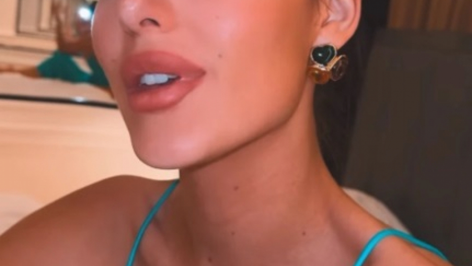 Na snimku koji je objavila na Instagramu, pevačica se opušteno snima dok sedi na krevetu, noseći izazovnu plavu satensku spavaćicu, bez brushaltera.